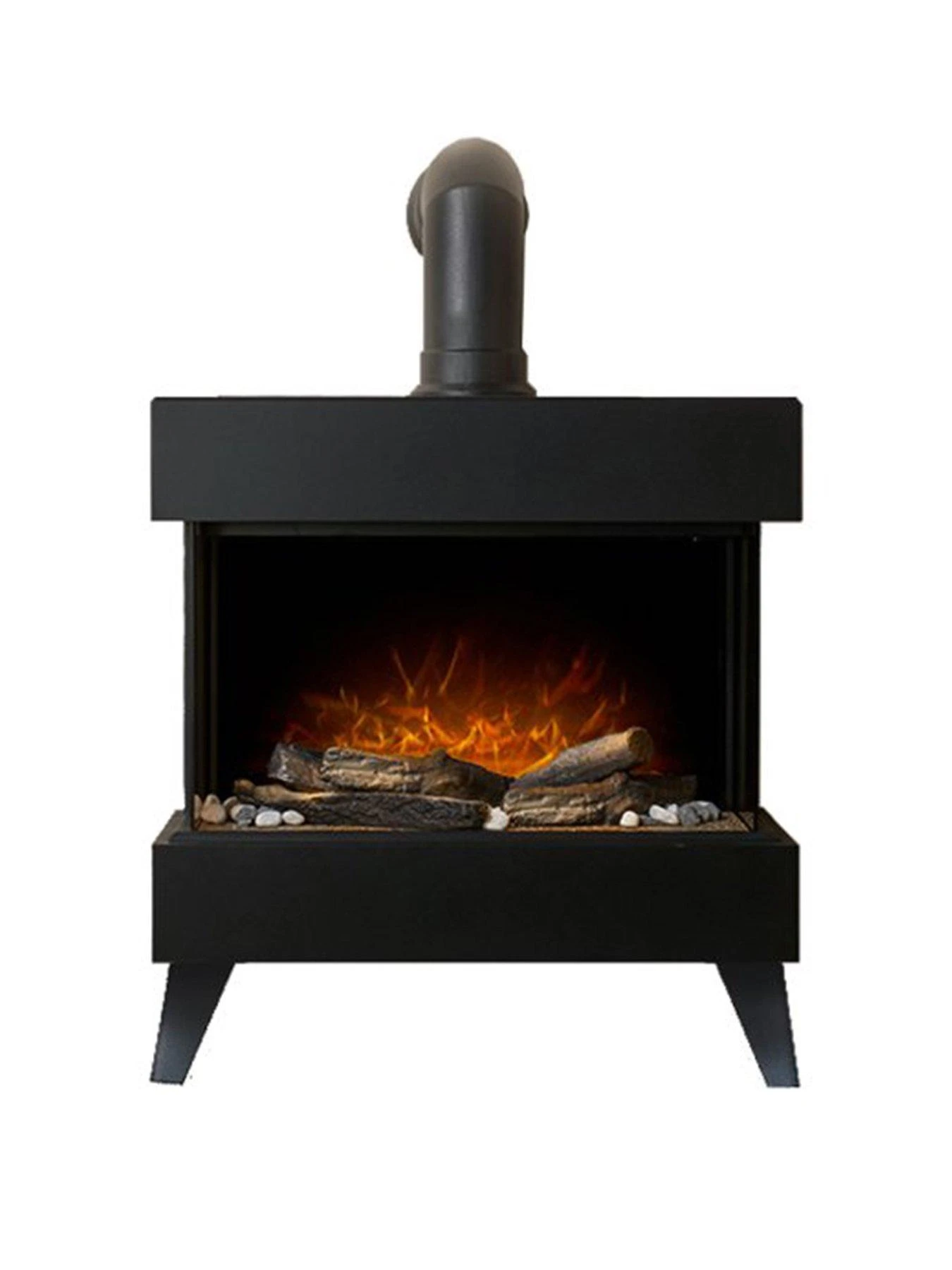 The Adam Viera in black is an electric stove that will set your imagination alight. The classic black finish is combined with a traditional log fuel bed and heritage angled stove pipe to create the perfect stylish stove.