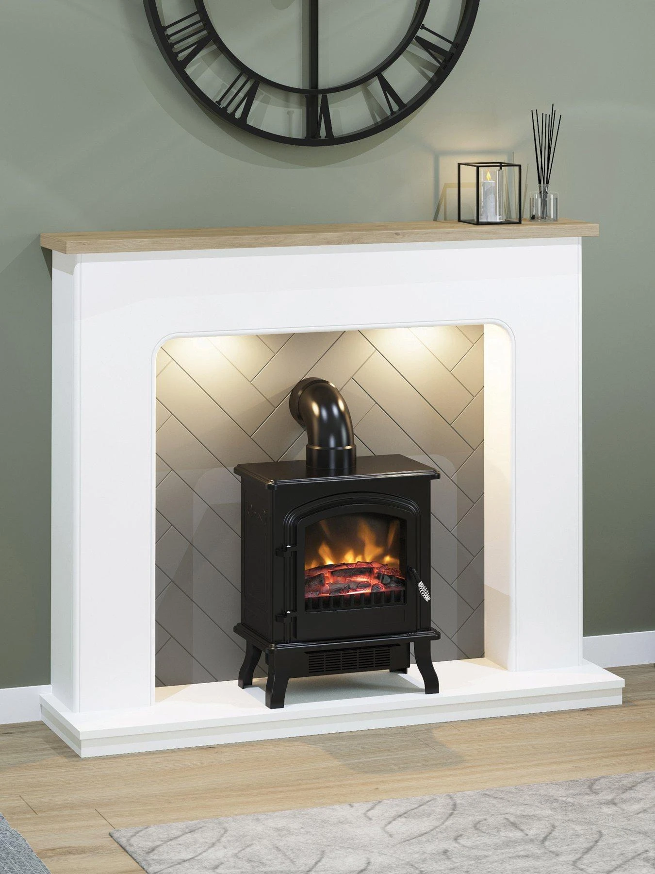 The included Coleman Electric Stove features a glowing log bed and dancing flame effect, making the Sennen Fireplace the perfect place to get comfortable as you relax and get cosy in the evenings.