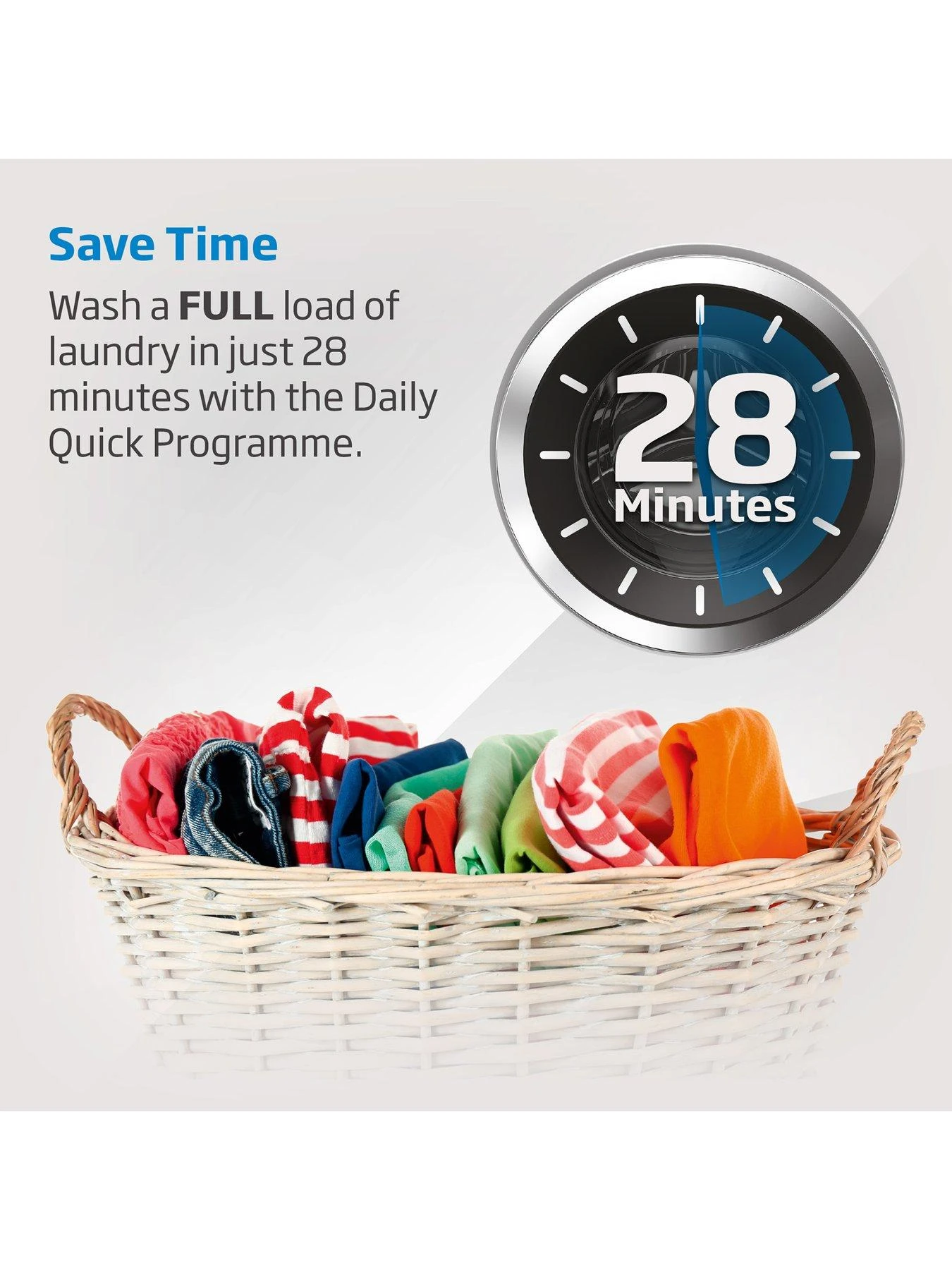 Perfect for busy families, this washing machine features a handy Quick programme, which can wash a large 9kg load in just 28 minutes. There are 15 wash cycles to pick from and a large display that also shows how long is left before your washing is done.