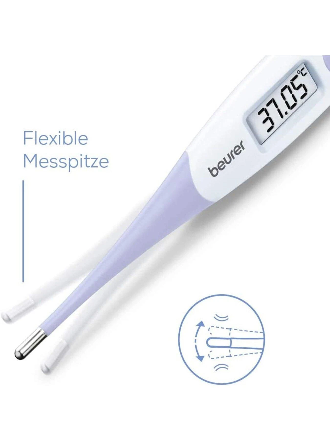 - Flexible measuring tip for comfort