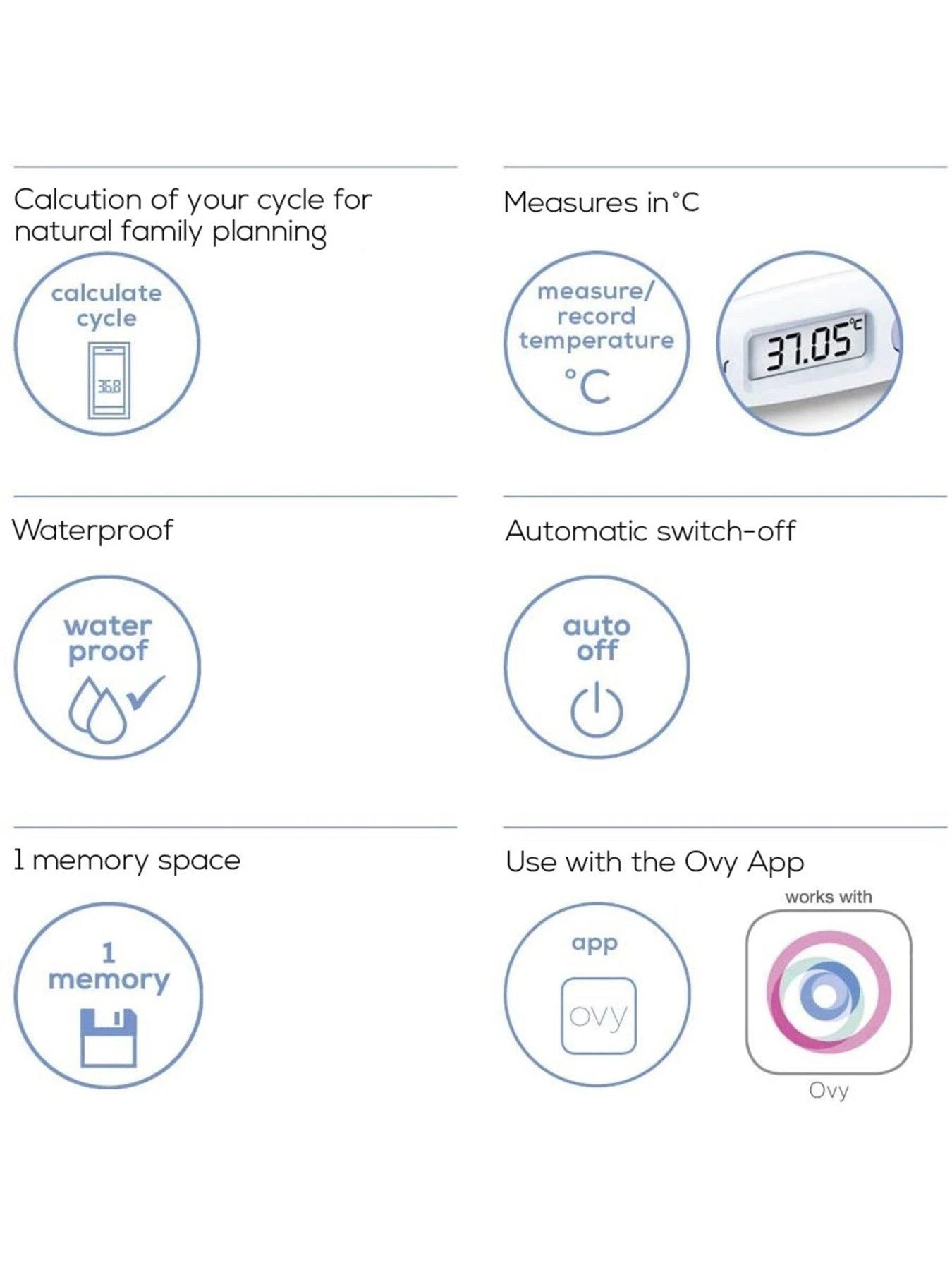 - Compatible with the free Ovy app for natural cycle tracking