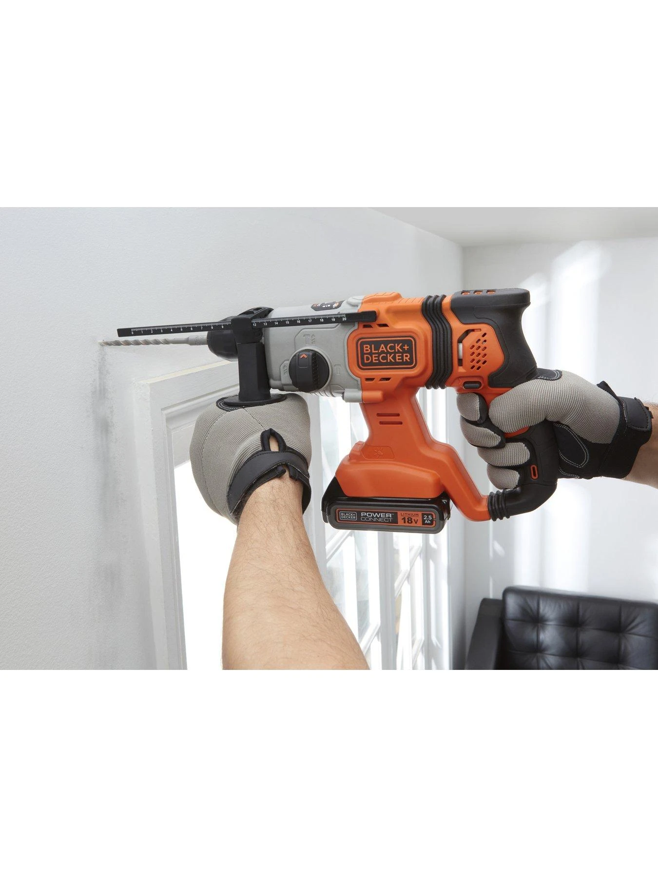 The Black + Decker 18V SDS+ Cordless Hammer Drill is designed for fast, efficient penetration of brick, block, stone and concrete.