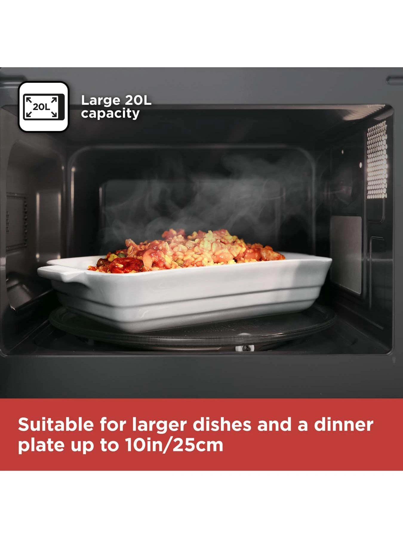 Have quick and easy meals in minutes in this stylish microwave by Black & Decker. Eat your favourite meals in minutes by choosing between the 5 power functions with a maximum power of 800W, ideal for everyday living. Its huge 20-litre capacity fits a standard sized plate, allowing you to cook larger quantities.