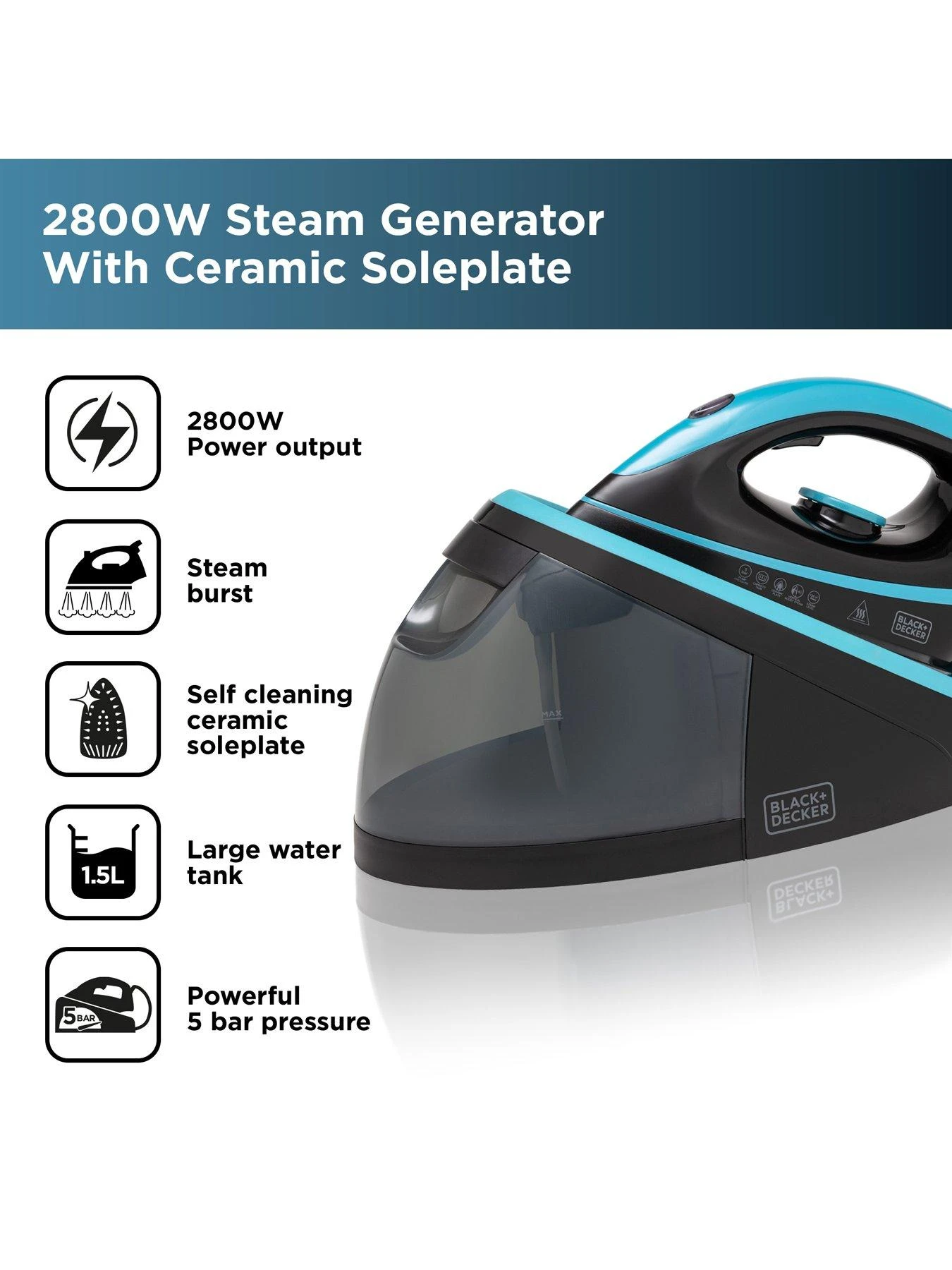 Black & Decker 2800W Steam Station – Aqua