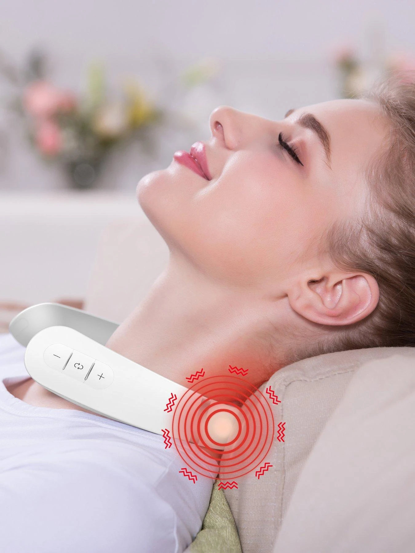 The easy-to-wear and hands-free Neck & Shoulder Massager fits snugly around the neck and can be worn while relaxing, watching TV or sitting at a desk!Â