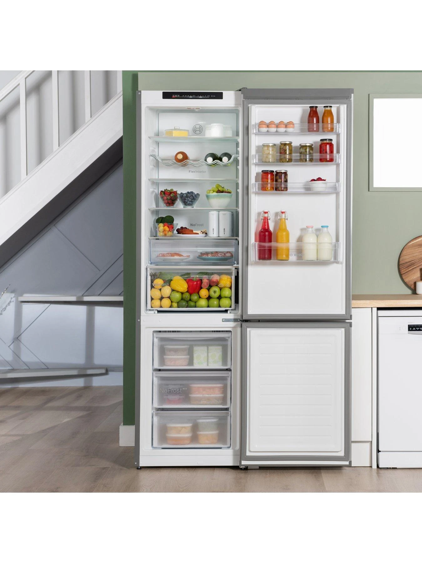 With this Bosch PerfectFit fridge freezer you don’t have to worry about making space for the door to swing open – it can be positioned directly next to a wall or cabinet and the door still open, no problem.