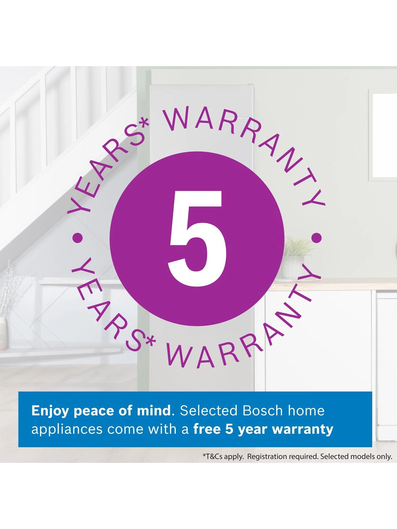 Claim a 5-YEAR WARRANTY when you buy this Bosch product between 01/04/2023 – 31/03/2024. To register your product and for full T&Cs, please visit www.bosch-home.co.uk/register-your-appliance. For full T&Cs, see www.bosch-home.co.uk/customer-service/repair-service/warranty-terms-and-conditions