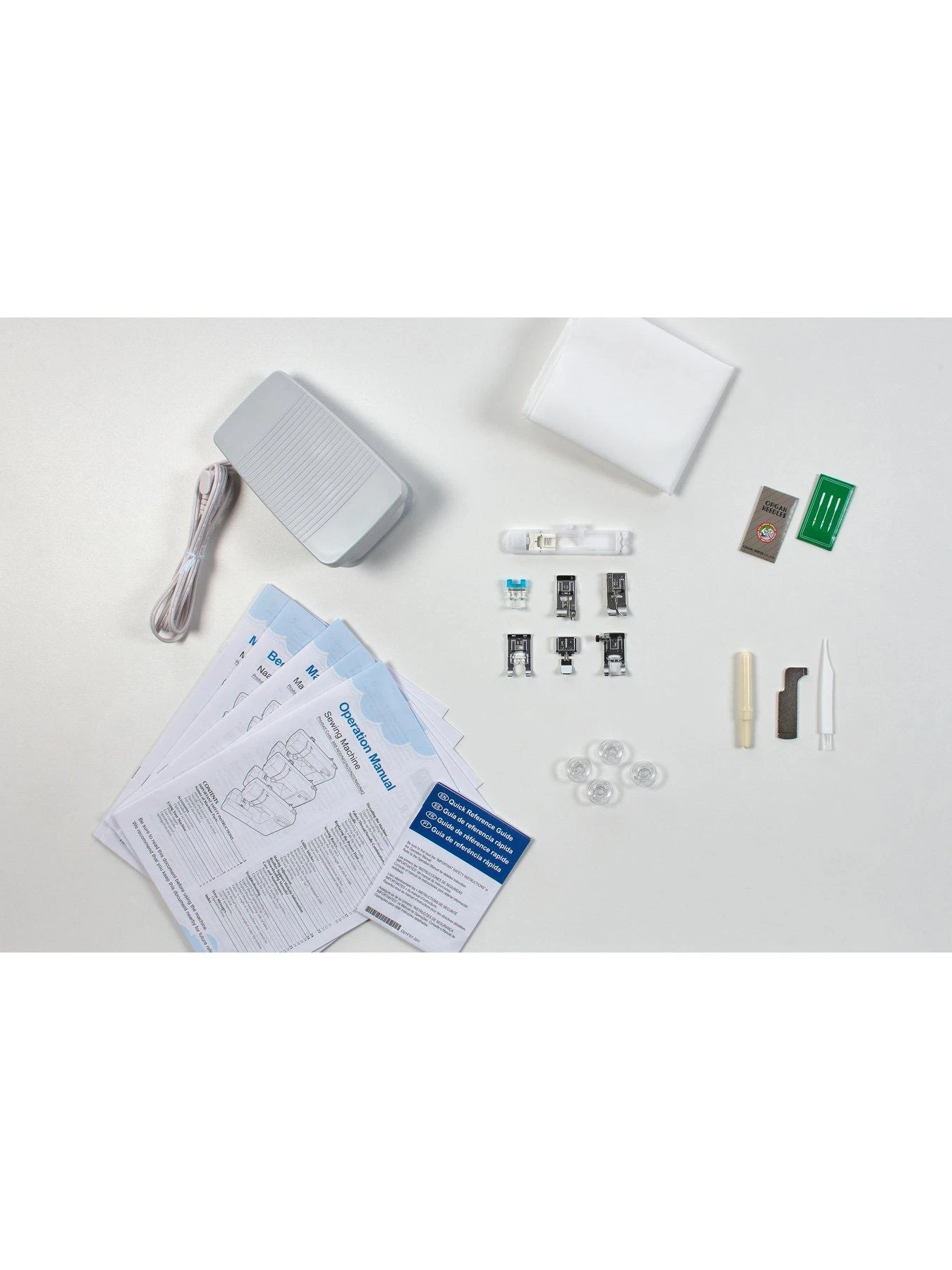 A back-lit LED control panel is large and easy to read, while other great features include a 1-step buttonhole maker, a drop-in bobbin and a slide speed control that removes the need for a foot control pedal.