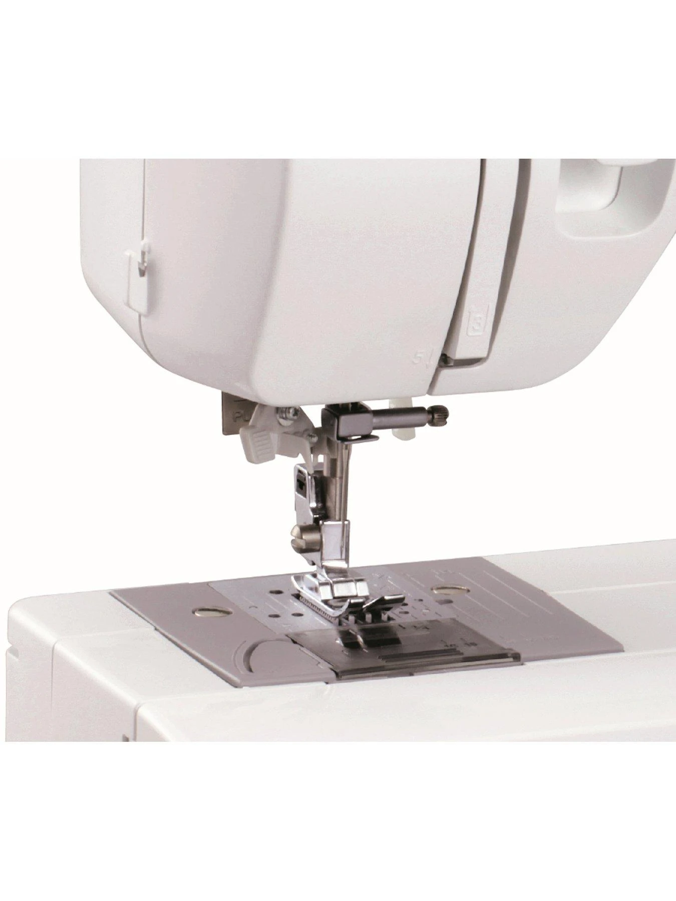 This traditional metal chassis sewing machine is ideal for a wide range of tasks, including dressmaking, repairs and alterations. Includes full selection of 37 stitch patterns and a top-loading bobbin mechanism.