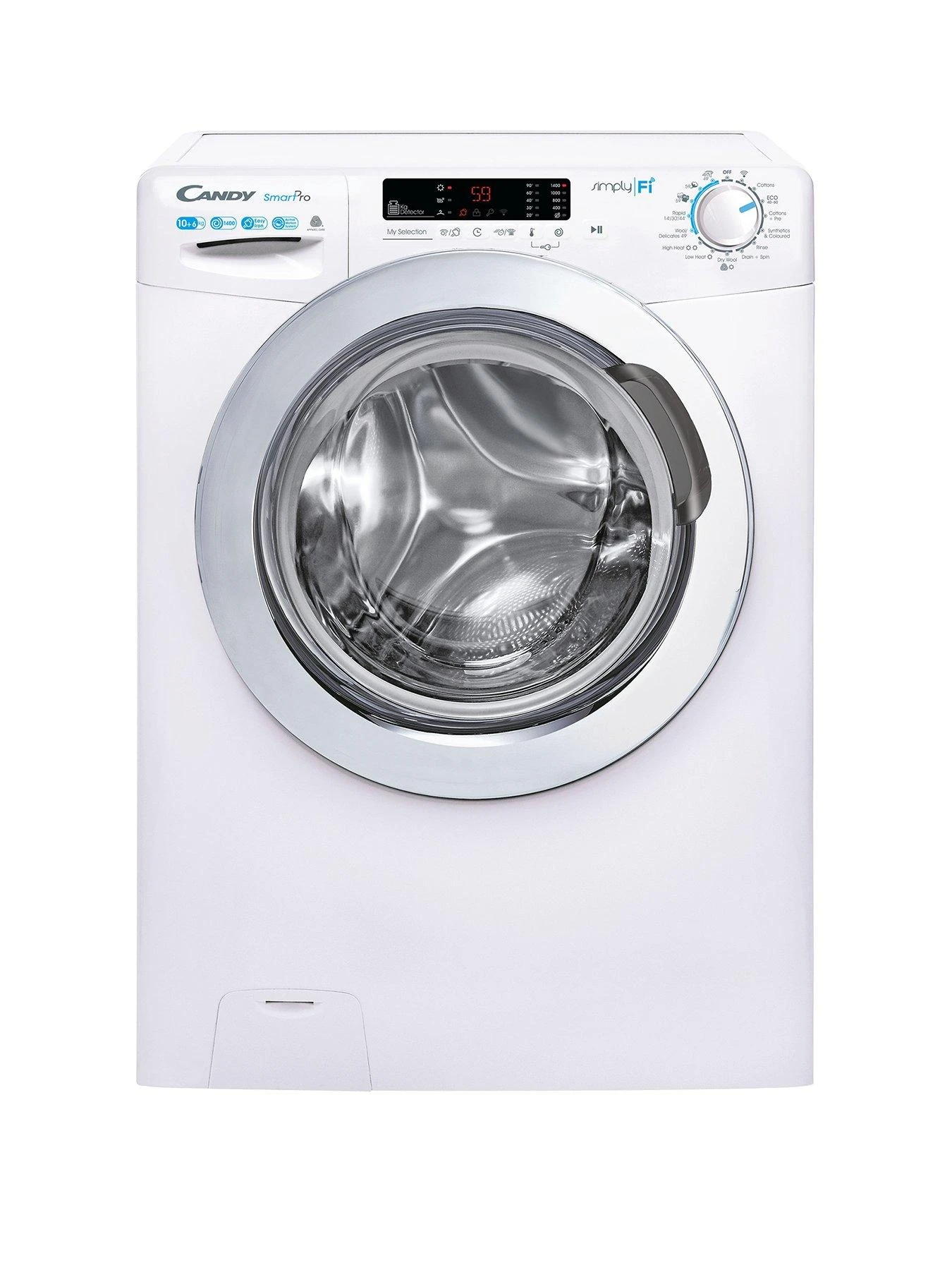 Candy Smart Pro CSOW 41063DWCE 10kg + 6kg Washer Dryer, 1400 rpm, Wifi Connected – White with Chrome Door – laundry days made easy.