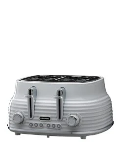 The stylish Sienna toaster features embossed ridges and a softly curved shape in on-trend grey to bring elegant contemporary design into your kitchen. This 4-slice toaster is also perfect for families, with controls for each toasting slot pair.