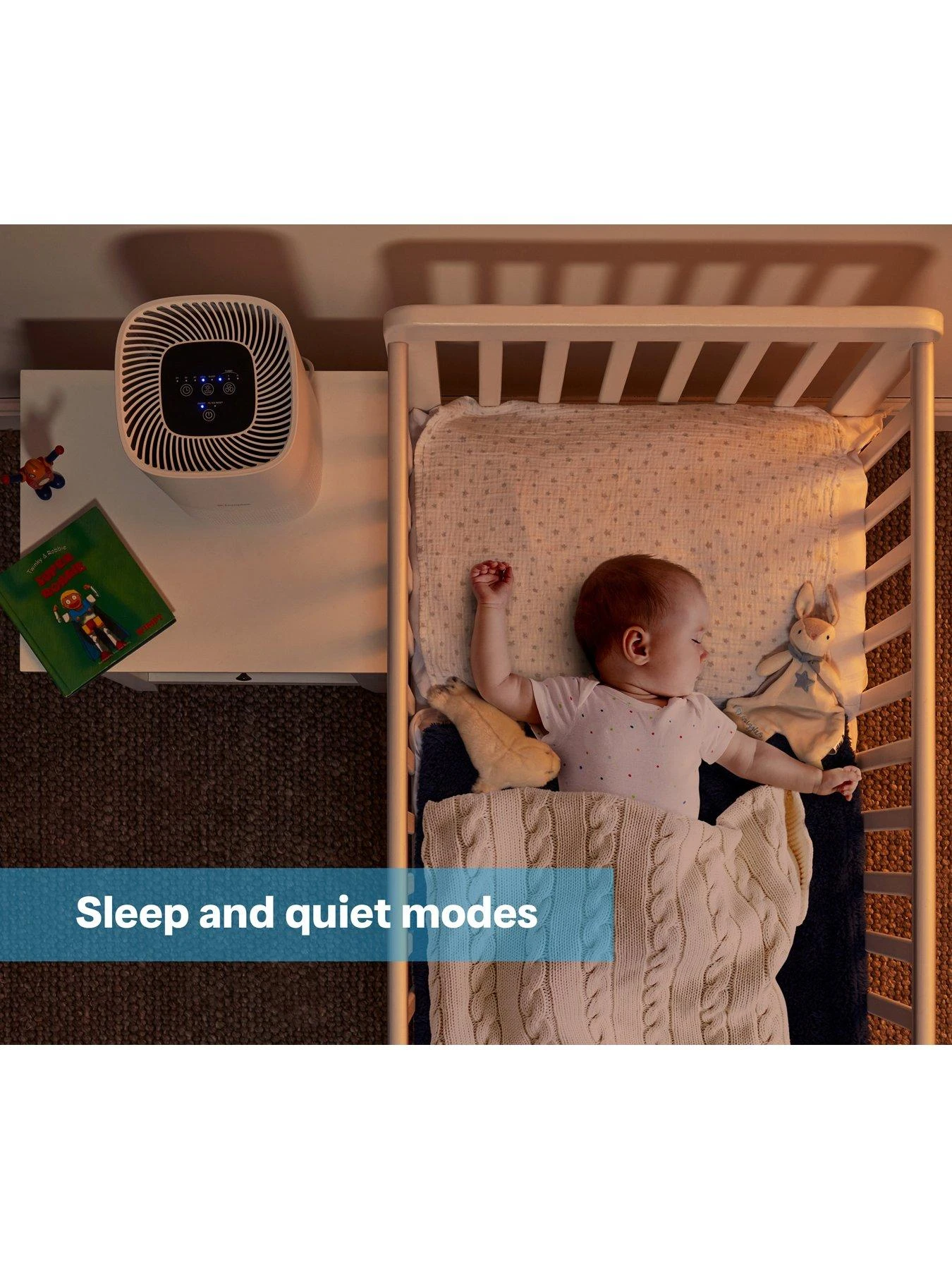 - Sleep mode turns lights off and runs at a noise level of just 30 decibels.