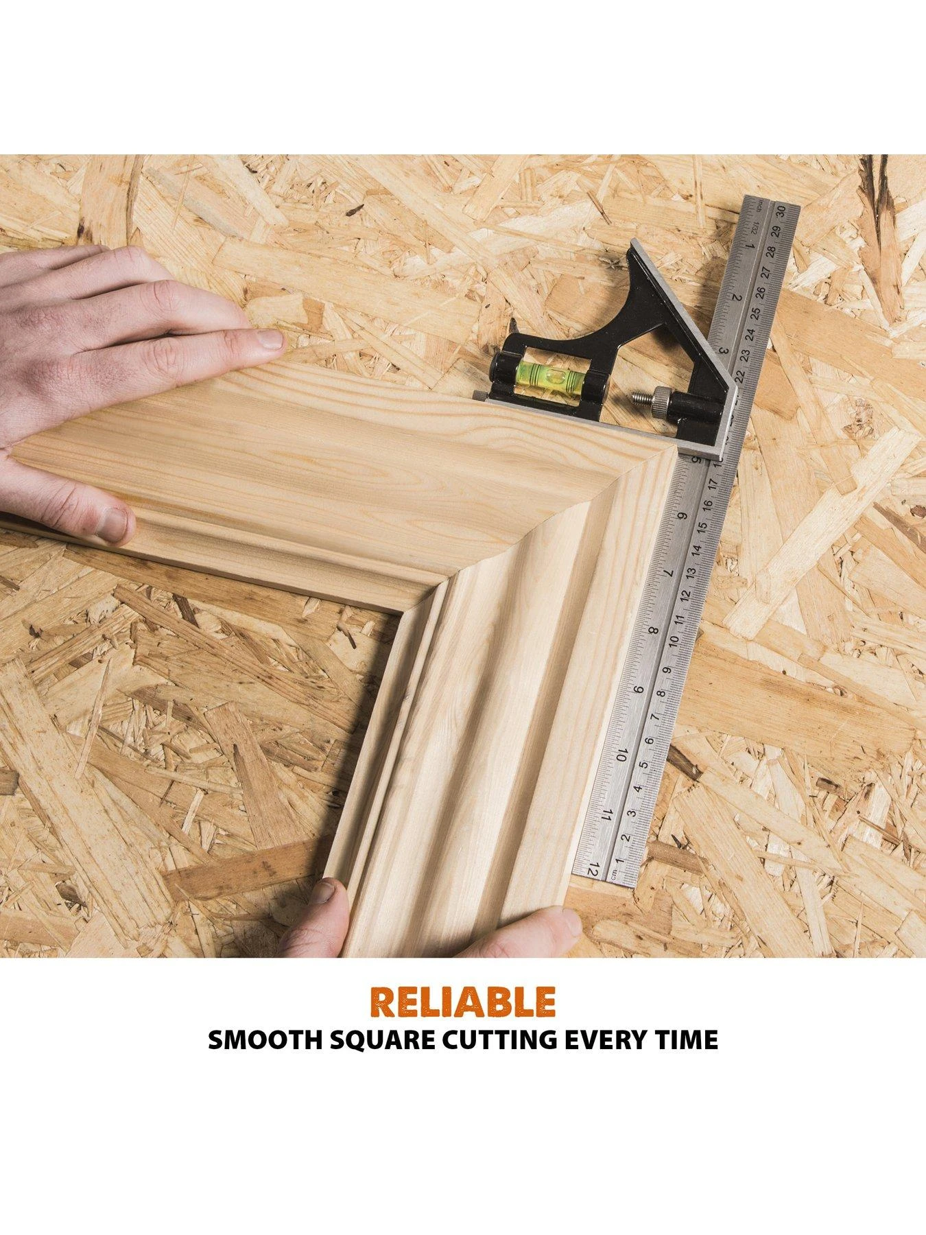 The double bevel facility reduces the need to re-adjust your workpiece making it the ultimate saw for the workshop or on the job site, with a huge 300 mm x 90 mm cutting capacity ideal for cutting copper pipe, plastic pipe, aluminium channel, cable tray, armoured cable, scaffold boards, skirting board, architraves, MDF, hardwood such as oak and ash plus much more. When working with reclaimed timber the saw has no problem cutting through embedded nails, screws or staples. Premium Wood Blade – Specialist wood blade for clean smooth accurate cuts