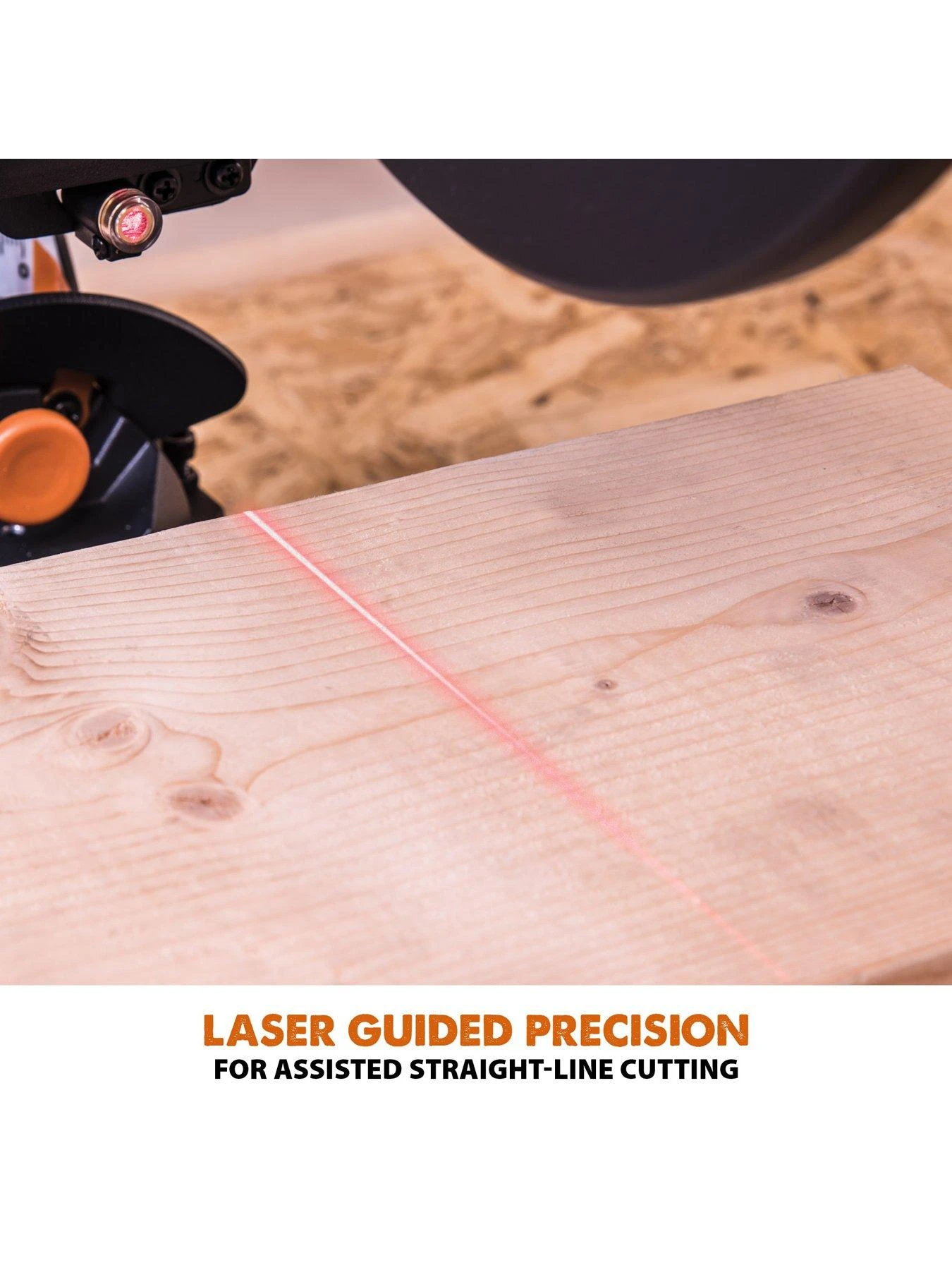 - Accurate – Precision cutting with laser guidance, trench cut facility, 300 mm slide, 0° – 45° double bevel and 50° – 50° mitre settings.