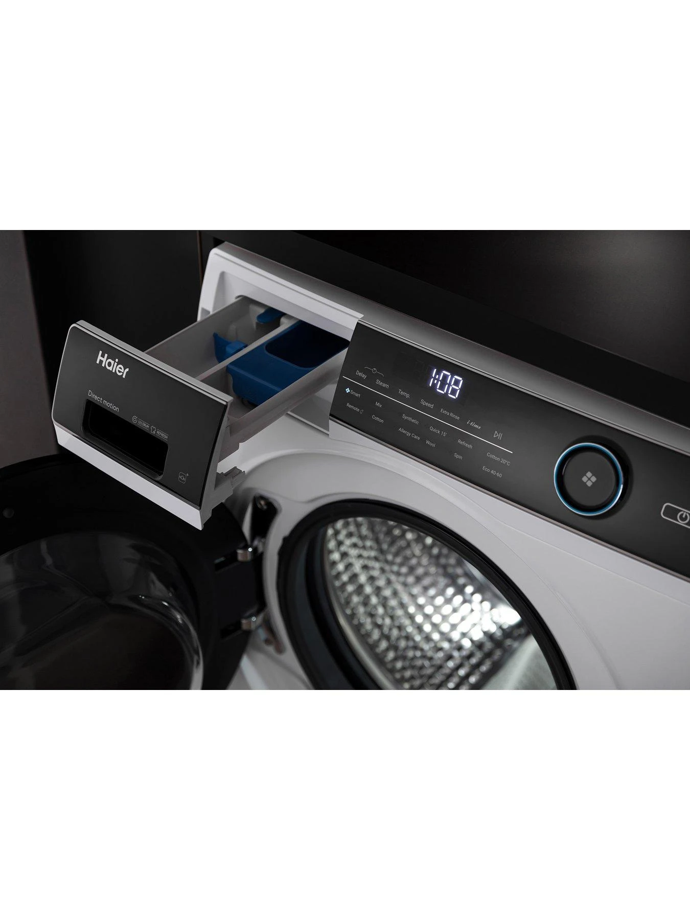 - This Haier washing machine uses digital internal scales to weigh your laundry, before automatically adjusting water consumption and cycle duration.