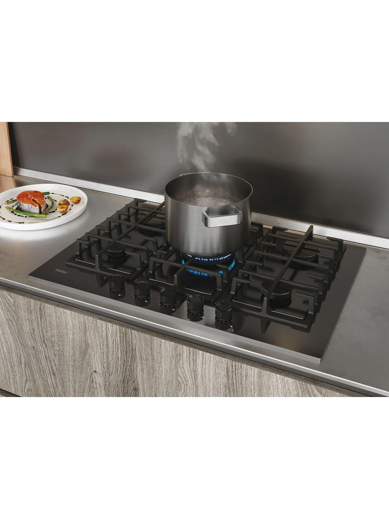 This Haier gas on black metal hob, perfectly combines design and functionality.