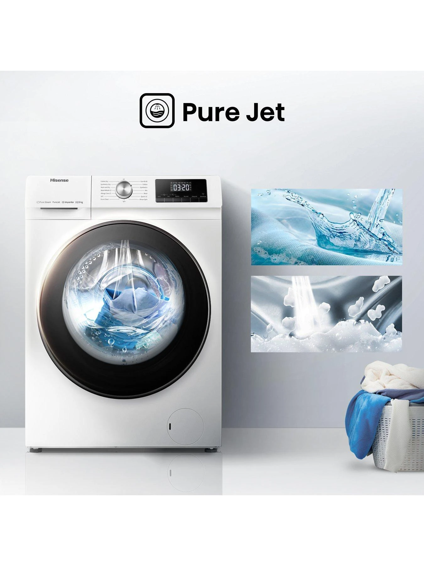 This model also includes Hisense’s PureJet system which produces powerful water flows that dissolve laundry detergent quickly and removes dirt thoroughly, making your clothes cleaner and more skin-friendly.