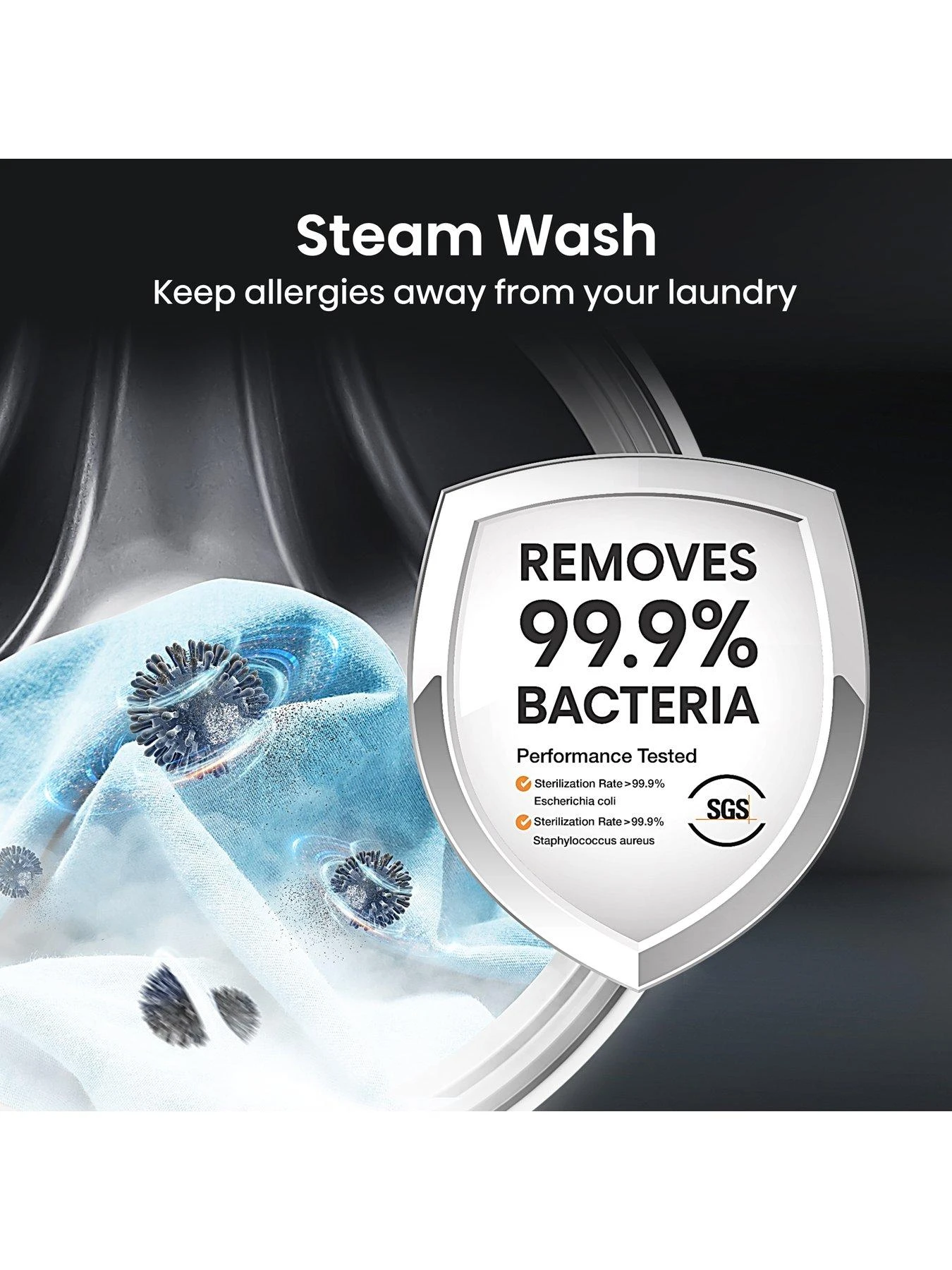 The high-temperature steamĀ fully penetratesĀ clothes toĀ eliminate 99.99% of Escherichia coli and Staphylococcus aureus.