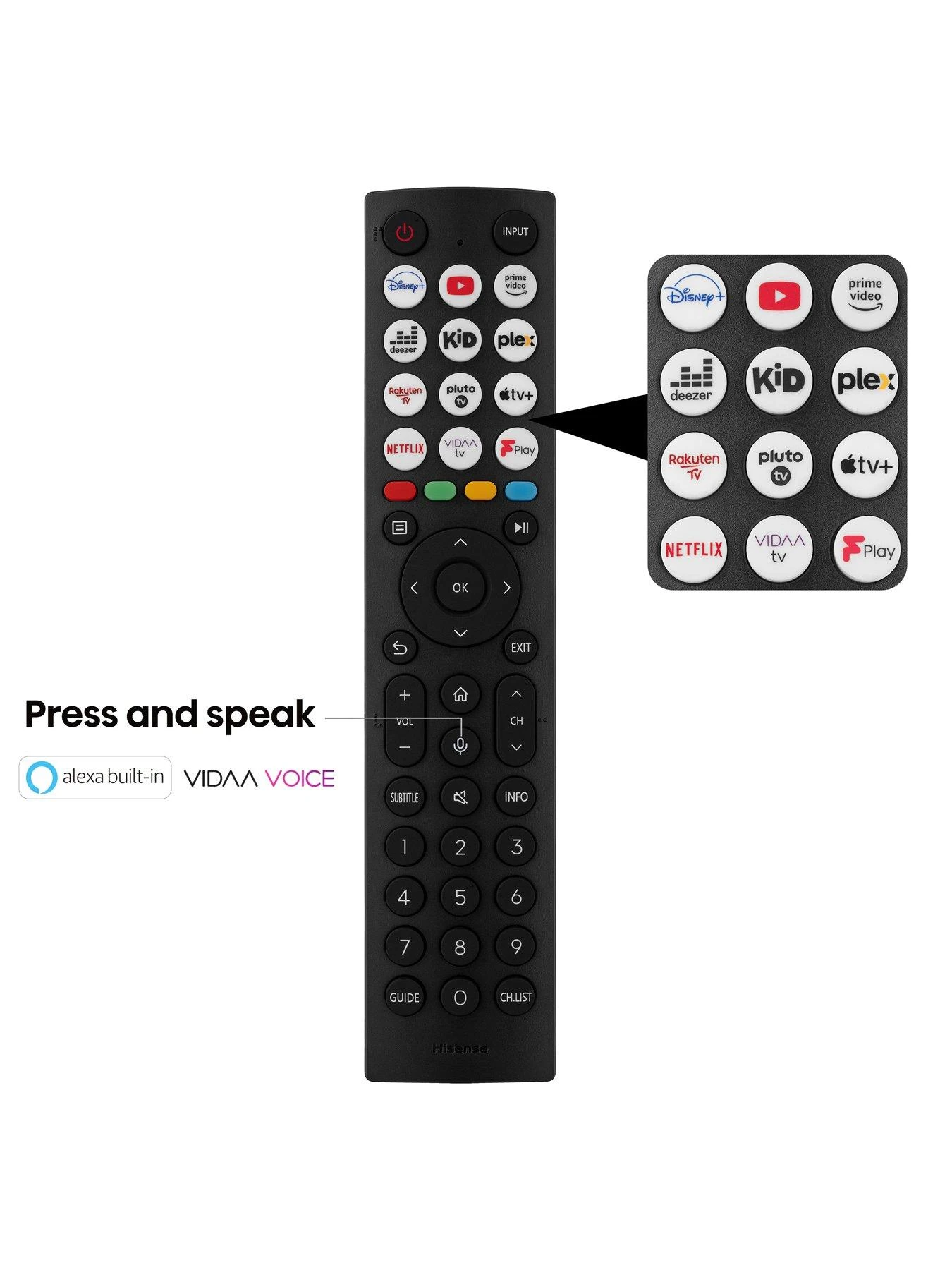 The VIDAA Smart TV OS lets you switch effortlessly between all of your favourite entertainment and built-in apps, including Netflix, Prime Video, YouTube and Freeview Play.