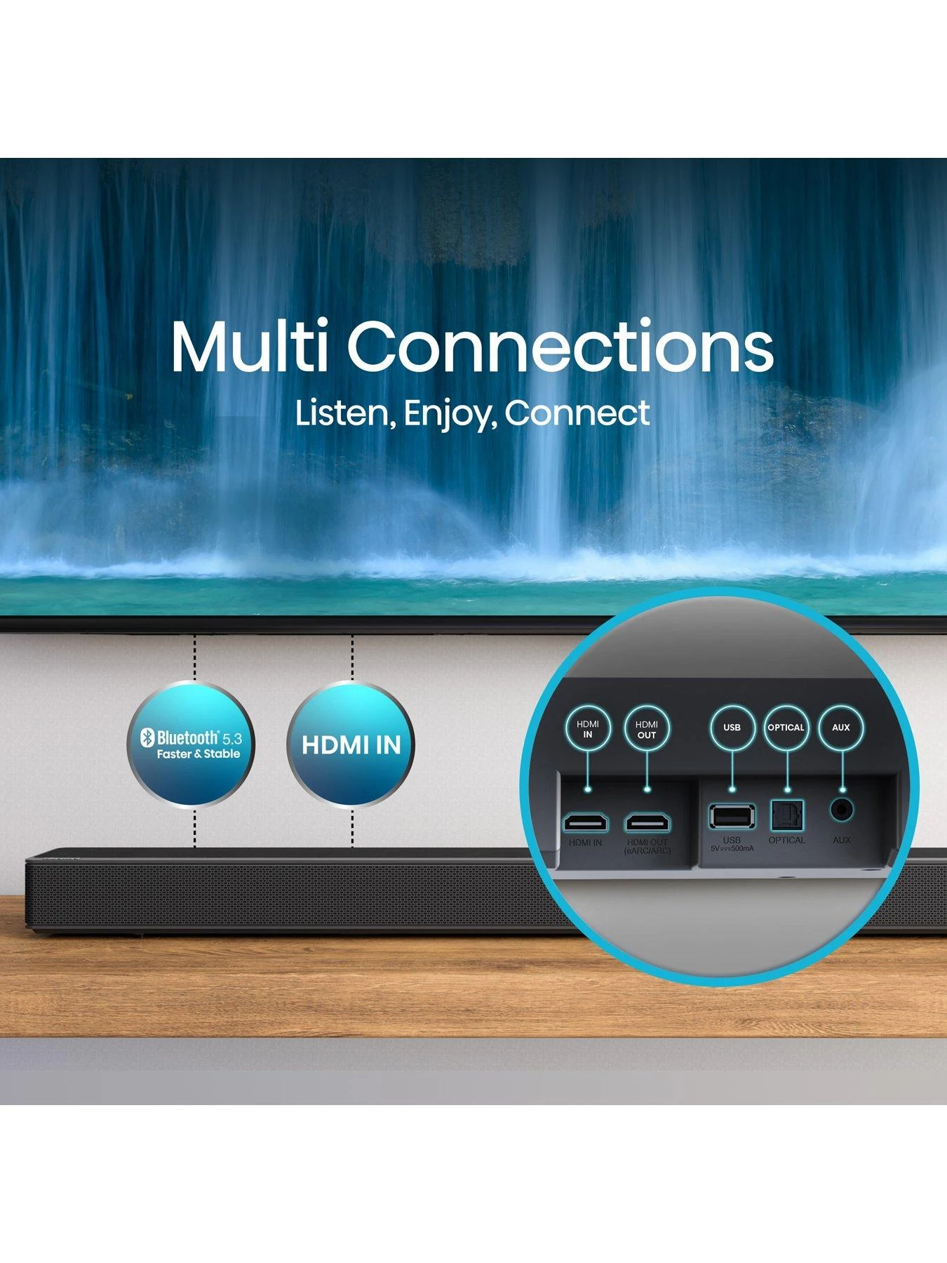 You can customise the sound using 7 audio enhancement modes, including news, movie, sports, game, and night modes. And eARC provides a simple one-cable connection with the included HDMI cable.