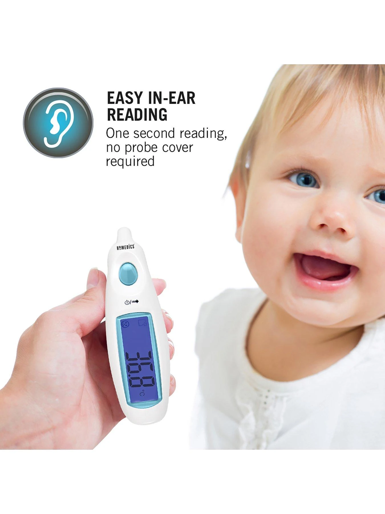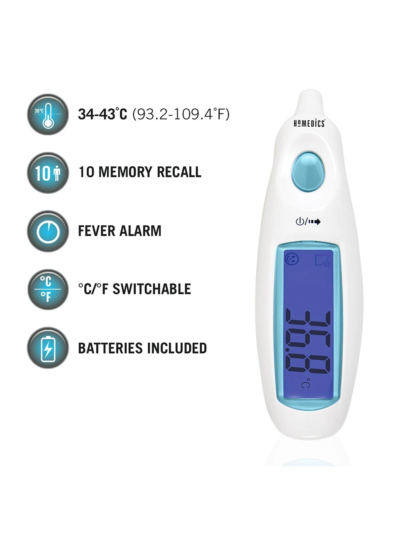 The HoMedics Jumbo Display Infrared Ear Thermometer provides instant body temperature readings with a one-button control. The probe on this themometer is waterproof, allowing you to clean and disinfect the tip safely. This thermometer is suitable for adults and children 6 months and over.