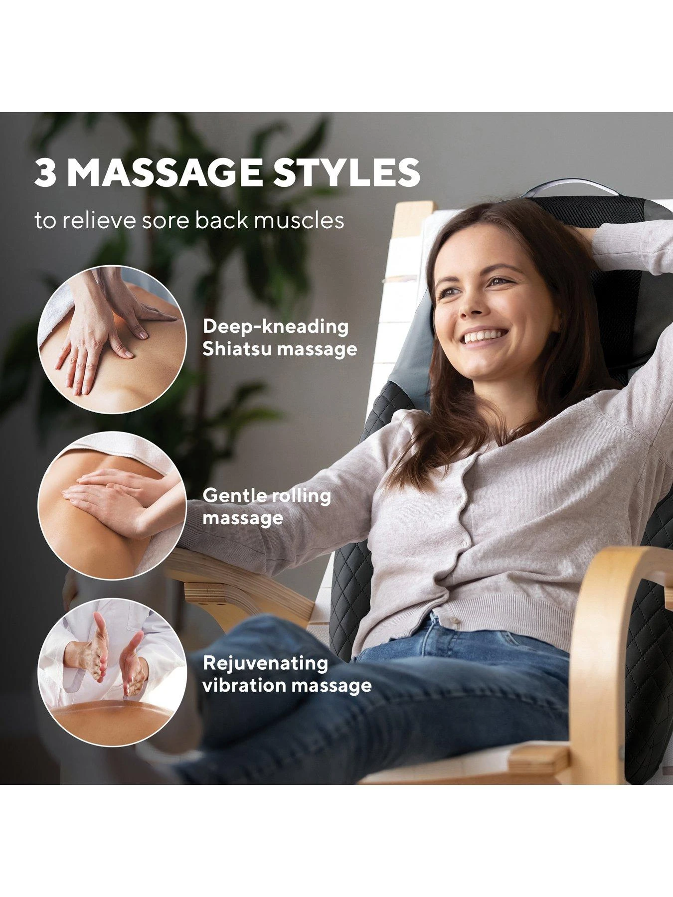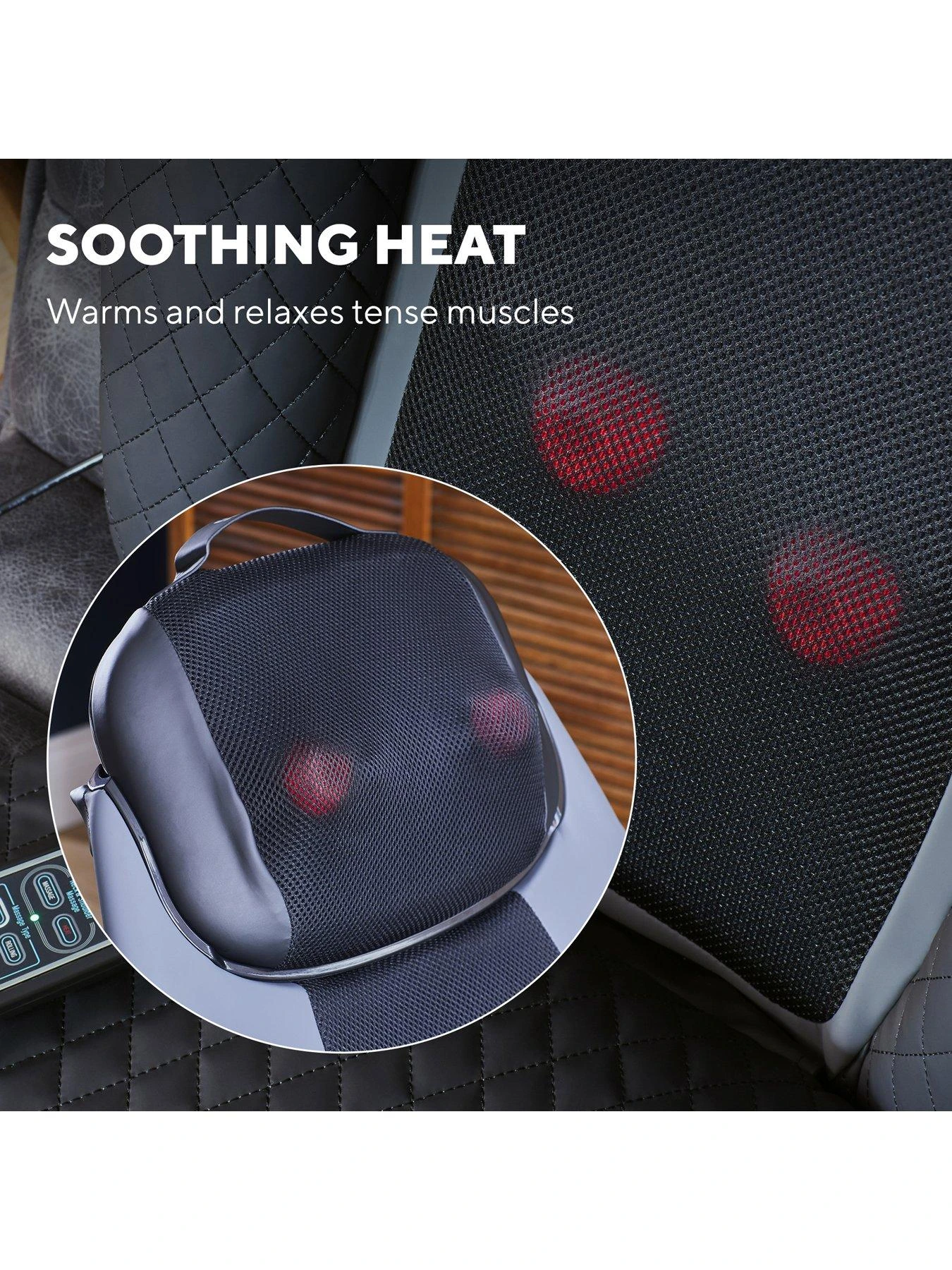 The massage cushion provides full back relief to soothe overworked muscles, whilst the independent cordless massager has targeted full-body coverage. Simply detach it from the massage cushion or use them in combination.