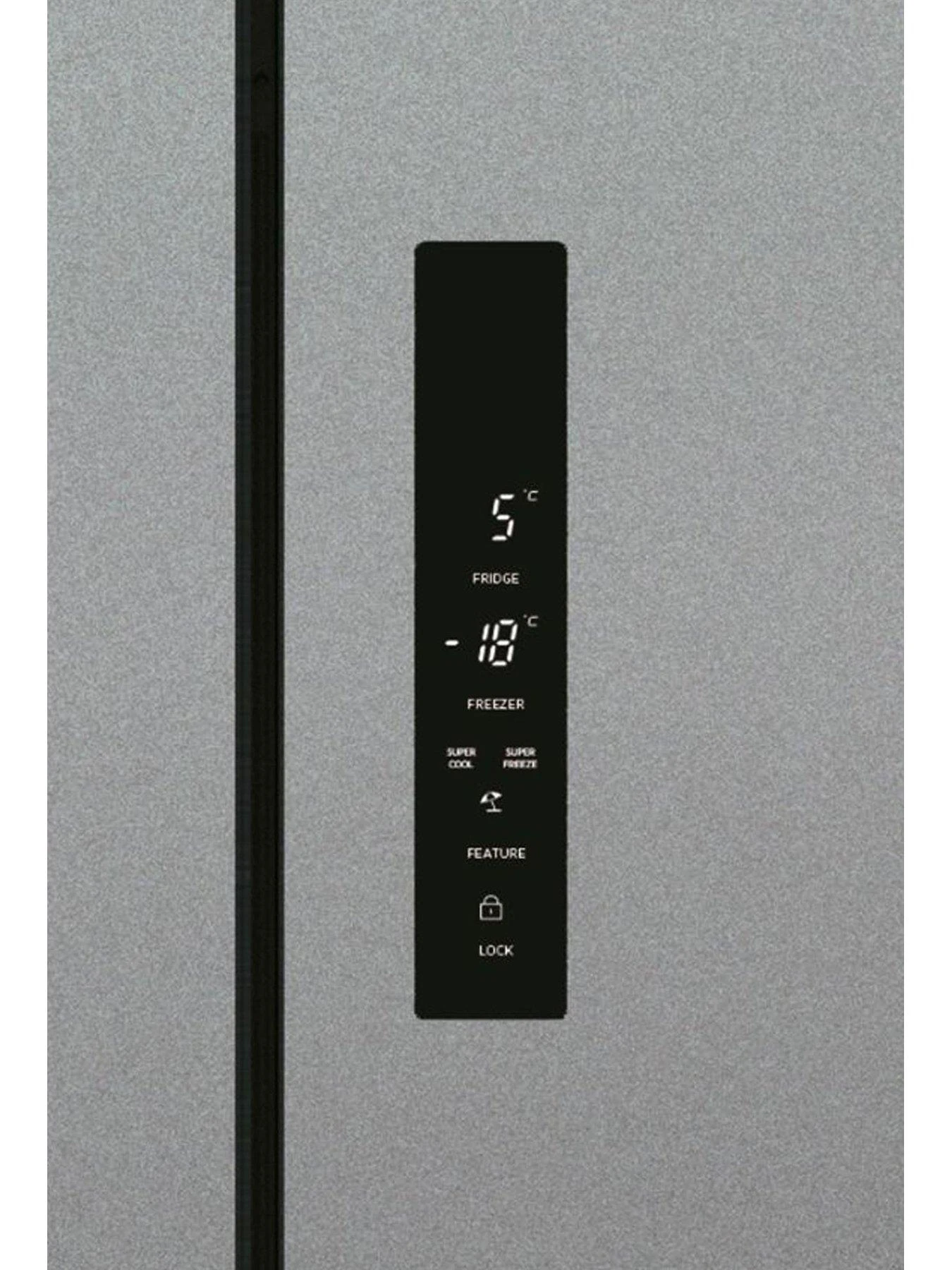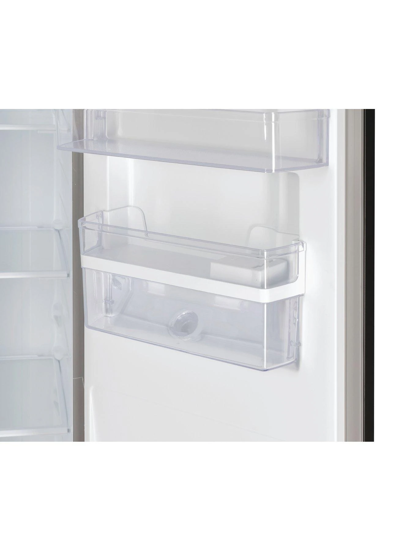 The fridge has three, large glass, anti spill shelves, two of which are adjustable, two large salad crisper drawers and storage compartments in both doors making maximum use of the space. The fridge also has a water dispenser built into the door, which is filled manually from the inside so no need for plumbing. The interior has an LED light which provides excellent visibility, whilst using less energy than a standard bulb. The fridge is controlled via an external, easy to use touch screen with digital display, meaning it’s easy to set the temperature you require too.