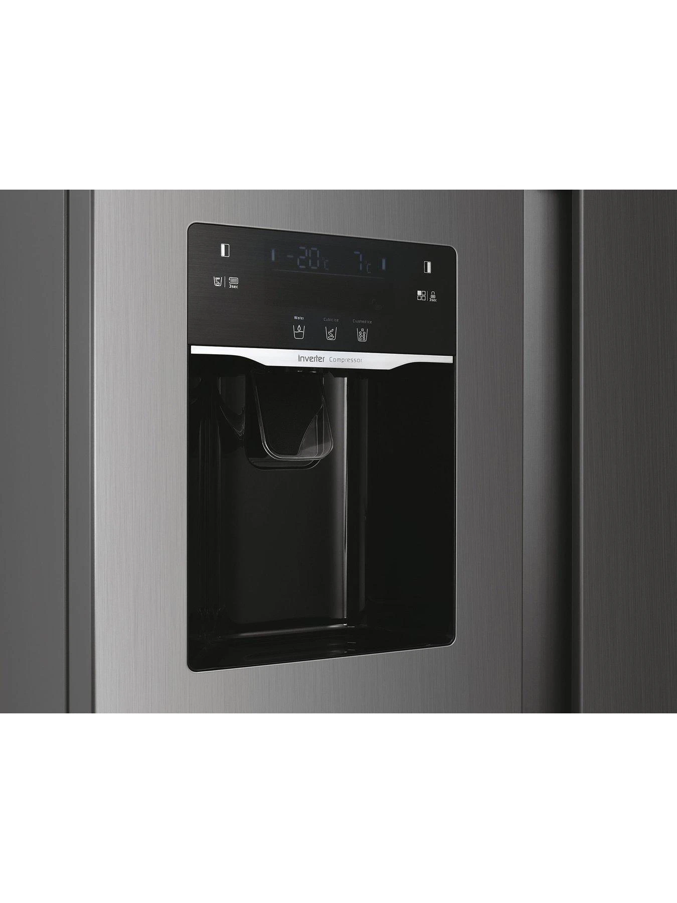 The automatic water and ice dispenser directly plumbed in provides clean water and cubed or crushed ice whenever you want. Ice-cold drinks in an instant!Inverter Compressor – less noise and more efficient. The Inverter compressor is one of the most efficient ones, and allows to reduce noise and avoid energy waste while keeping the temperature more stable. This compressor is also long-lasting, making the refrigerator more durable.