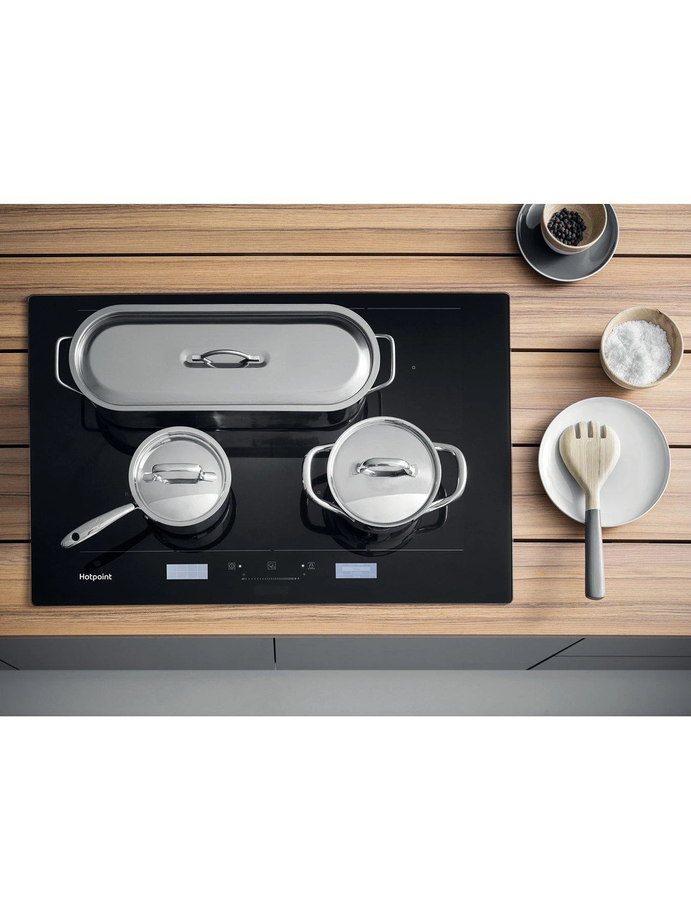 The versatile Hotpoint ACP778CBA 77cm Wide Built-in Induction Hob adapts to suit your needs.
