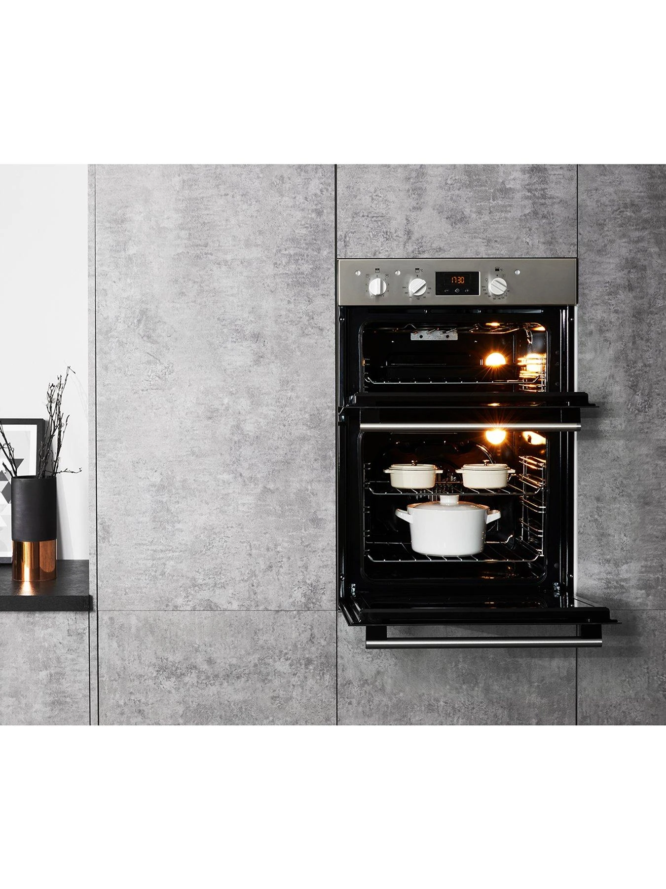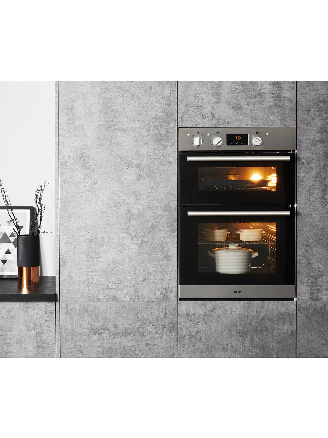 Get ambitious in the kitchen with the stylish and roomy Hotpoint DD2540IX Electric Double Oven.