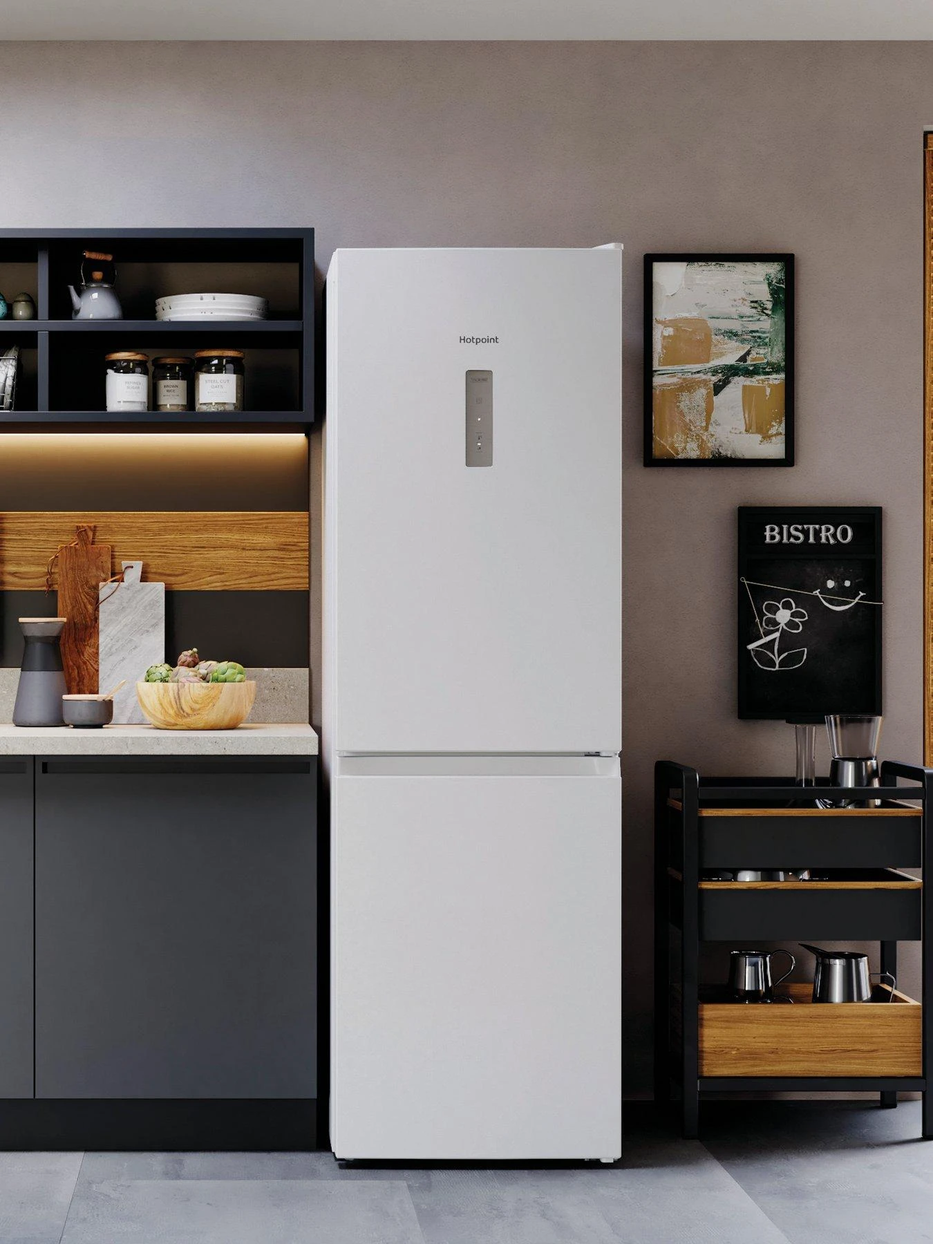 Hotpoint’s Total No Frost technology ensures no ice build up in your appliance, so you’ll never have the chore of of defrosting your fridge or freezer again. The easy-to-organise 231-litre fridge sits above the 104-litre freezer, giving you plenty of space for all your weekly shopping.