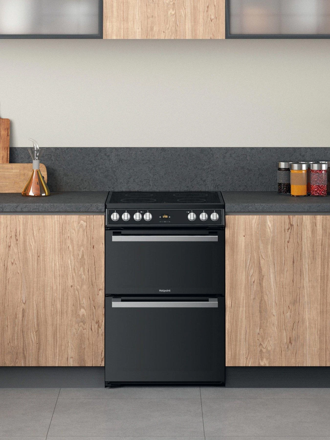 Hotpoint HDT67V9H2CB 60cm Wide Double Oven Cooker with Ceramic Hob – Black