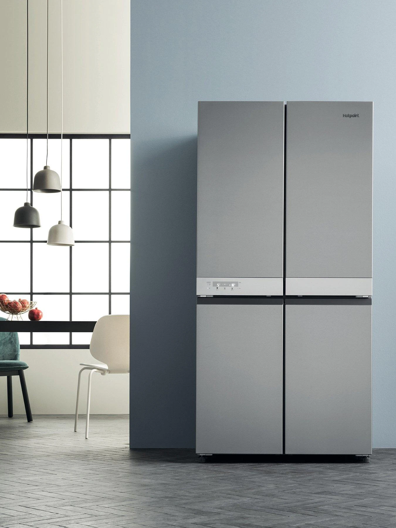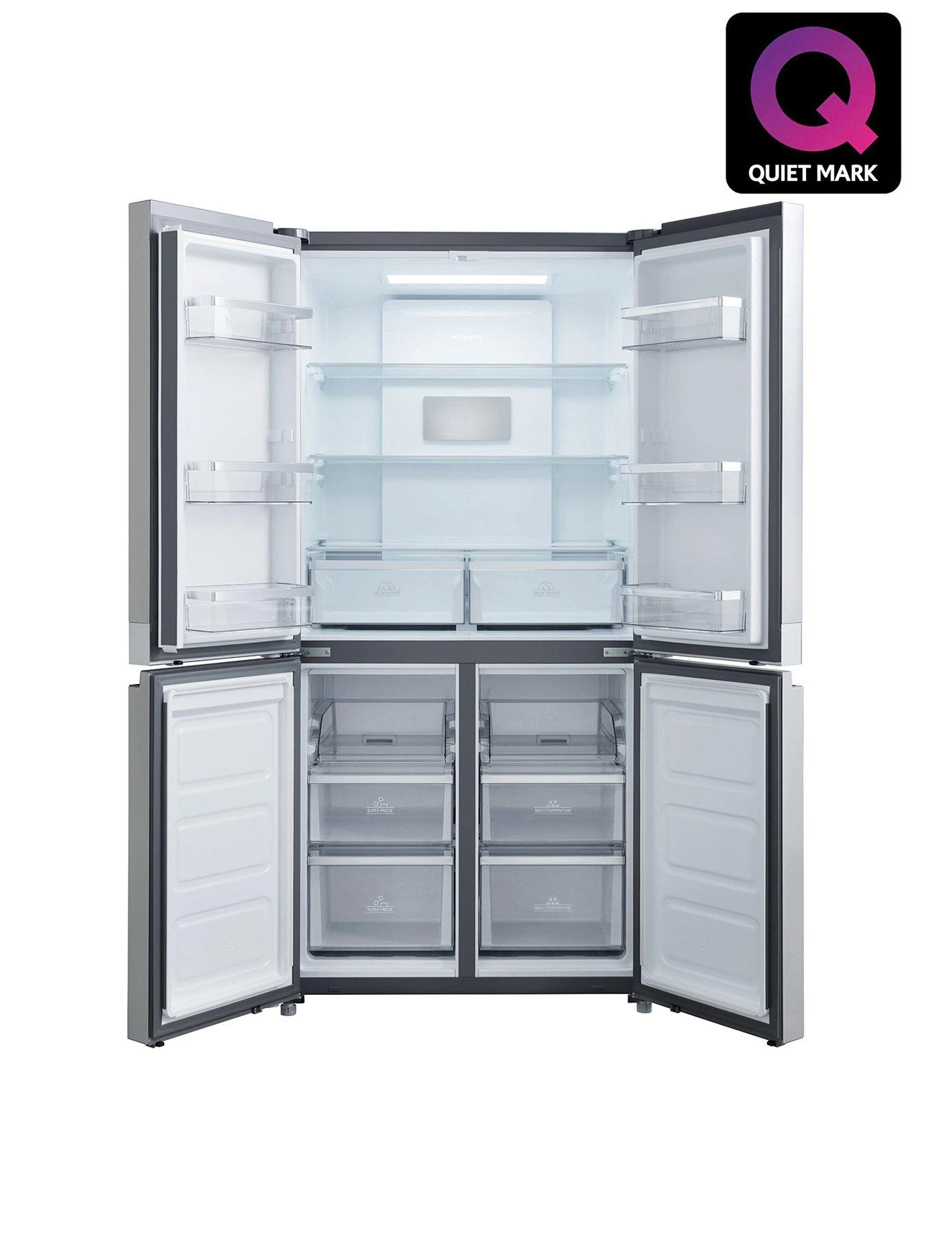 At just 37.5 dbA, this fridge-freezer goes unnoticed working quietly in the background. The new Hotpoint Active 4-door Fridge-Freezer offers a large 591 litre capacity with flexible solutions for all your storage needs. At 70cm depth, this fridge-freezer sits perfectly flush alongside your worktop for a seamless look.