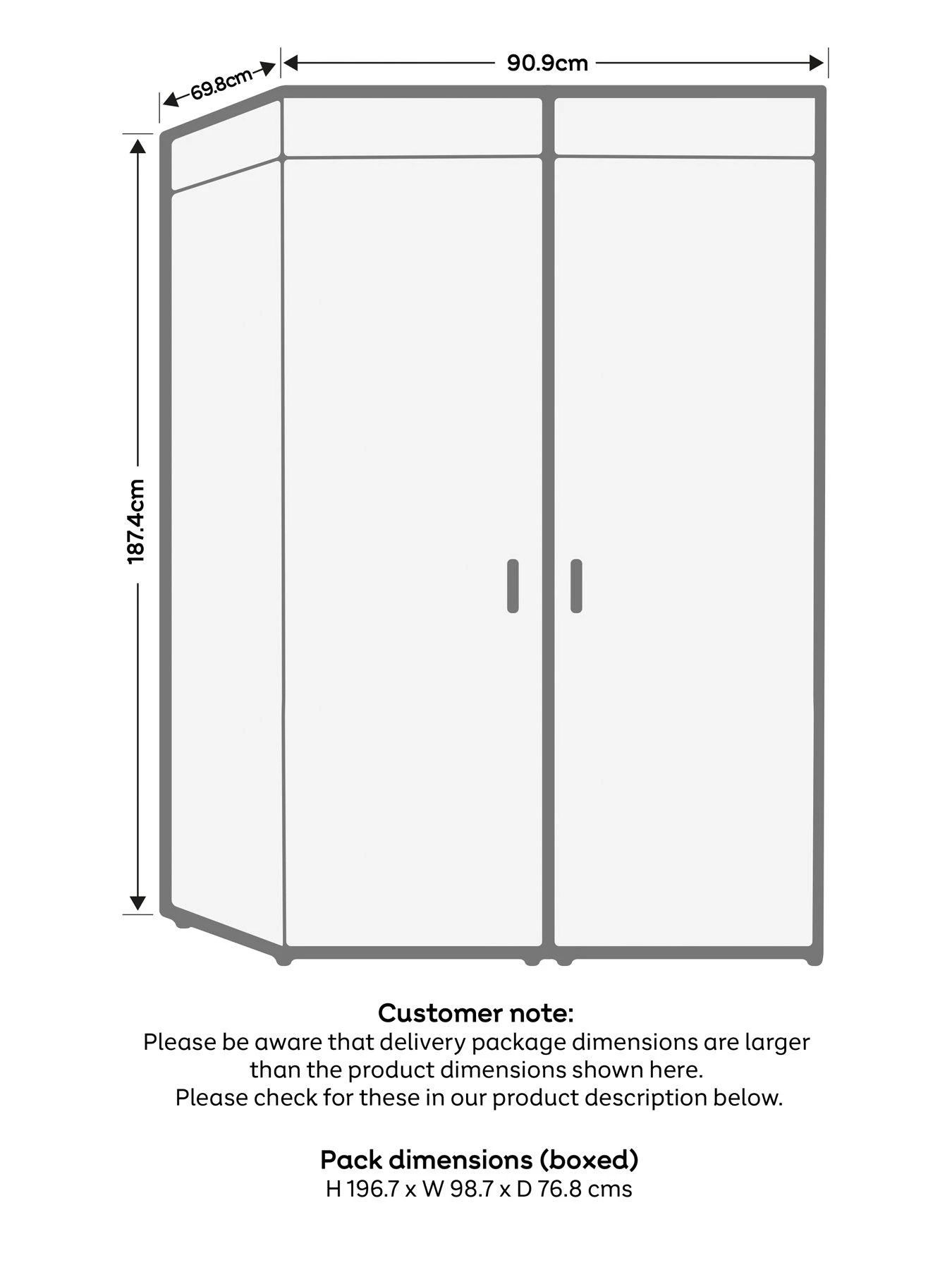 Customer note: Please be aware that delivery package dimensions are larger than the product dimensions shown above. Please check these boxed dimensions before ordering to ensure this can be delivered to property.
