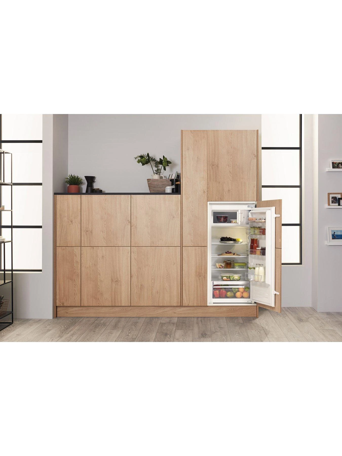 Offering versatility and efficiency in one handsome unit, the Indesit HSZ12A2D1 Built-in Fridge is a compact model ideal for apartment living and easy to integrate into every kitchen. With three glass shelves for flexible storage, the dedicated wine rack and salad bin will ensure your salads, fruit and vegetables stay as crisp as your favourite tipple. Don’t always keep your fridge fully stocked? Not to worry, the adjustable thermostat puts you in control of the internal temperature to help keep tabs on efficiency.