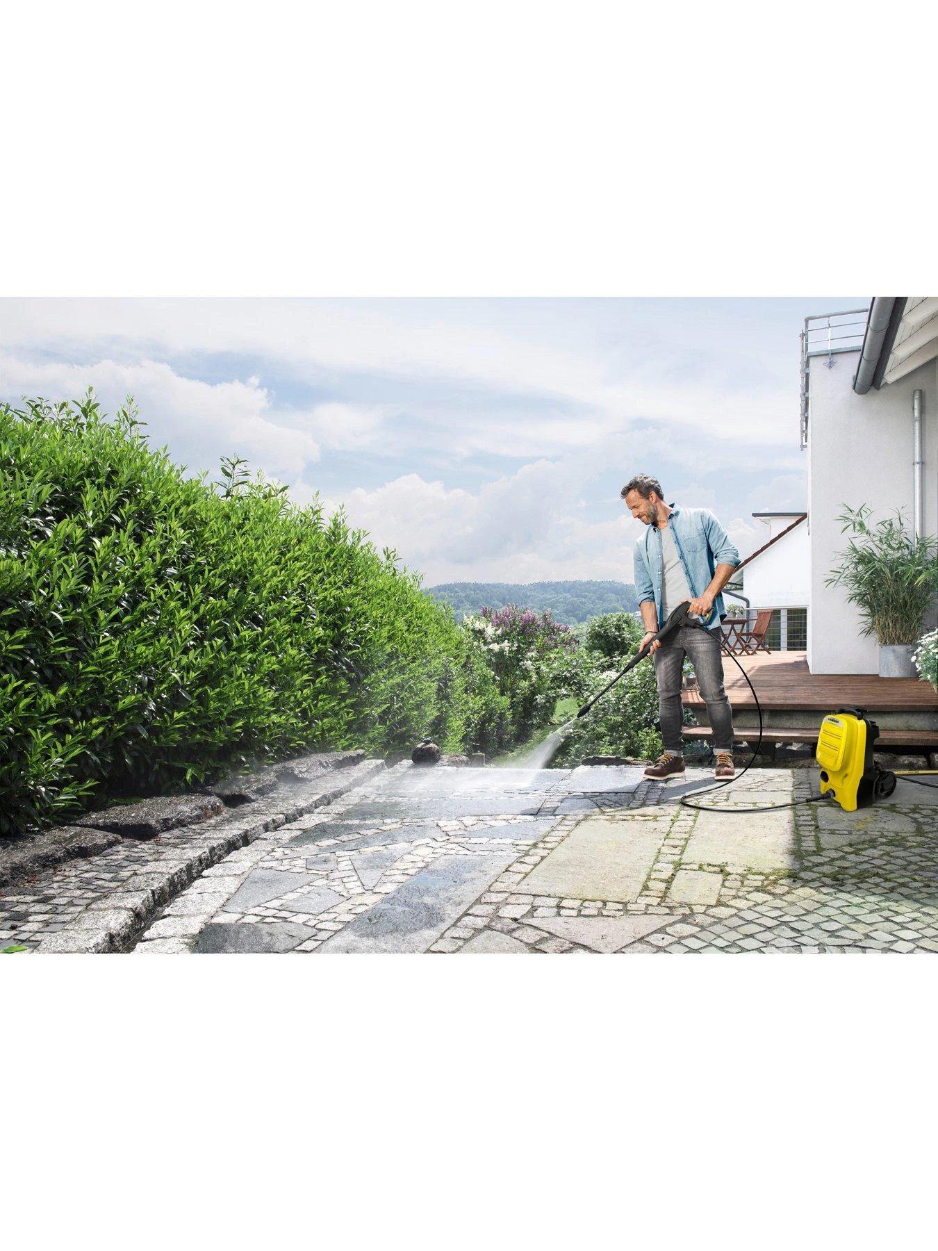 The Kärcher K 4 Compact pressure washer can make light work of even the biggest cleaning jobs. Whether you’re looking to gently clean delicate paintwork on your car, or need to remove stubborn dirt from any hard surface, the K 4 Compact is up to the task. The unit is small enough to be stored in a shed or transported in the boot of the car, with a telescopic handle so it’s easy to carry or wheel around, and on-board storage of the hose, cable and accessories. The K 4 Compact pressure washer comes with a trigger gun, a vario Power lance and a dirt blaster lance that delivers outstanding cleaning performance using concentrated rotating pressure. There’s also a 6m high pressure hose to give you plenty of reach, and a detergent suction feature for easy application of detergent while you’re cleaning.