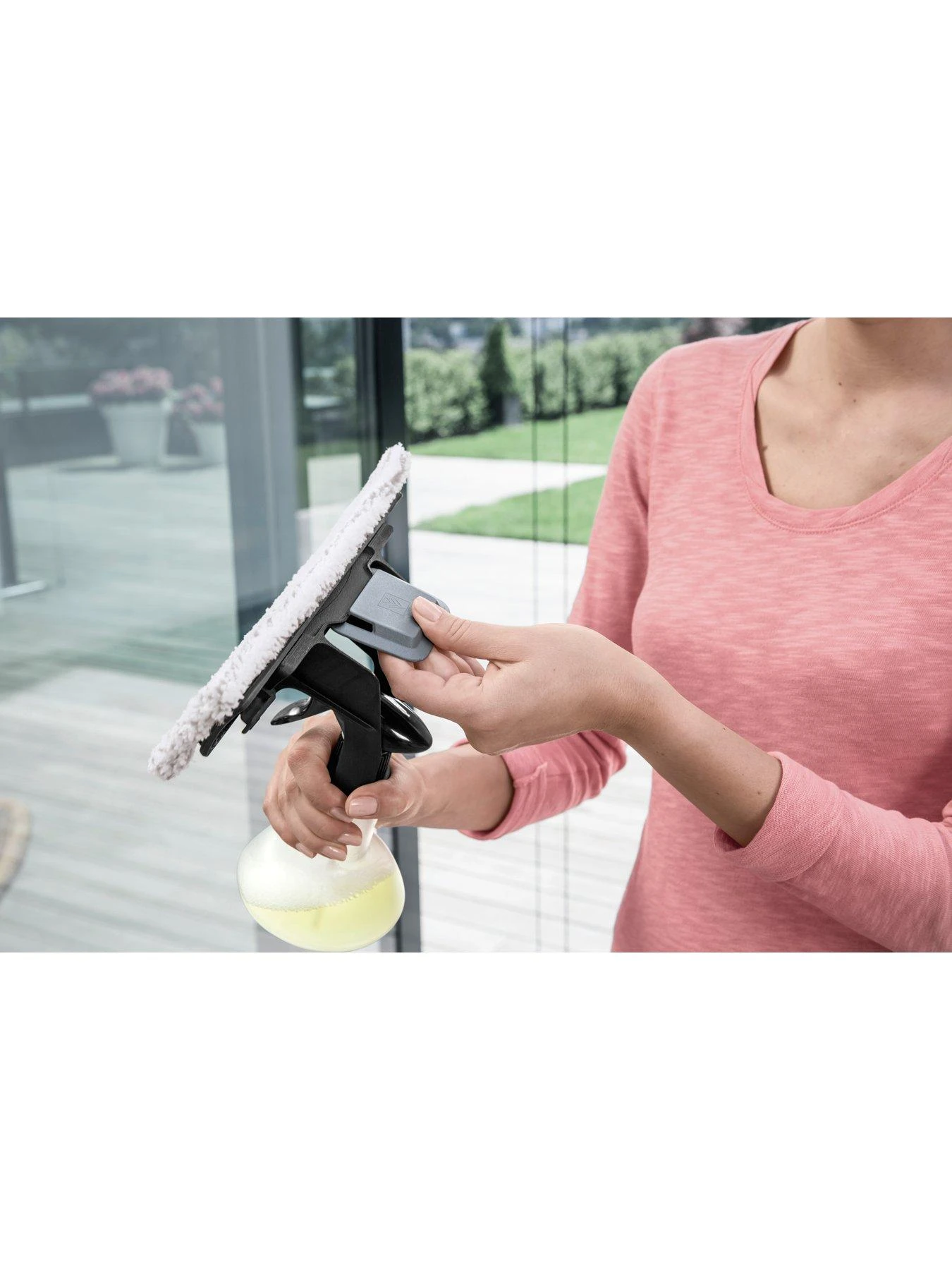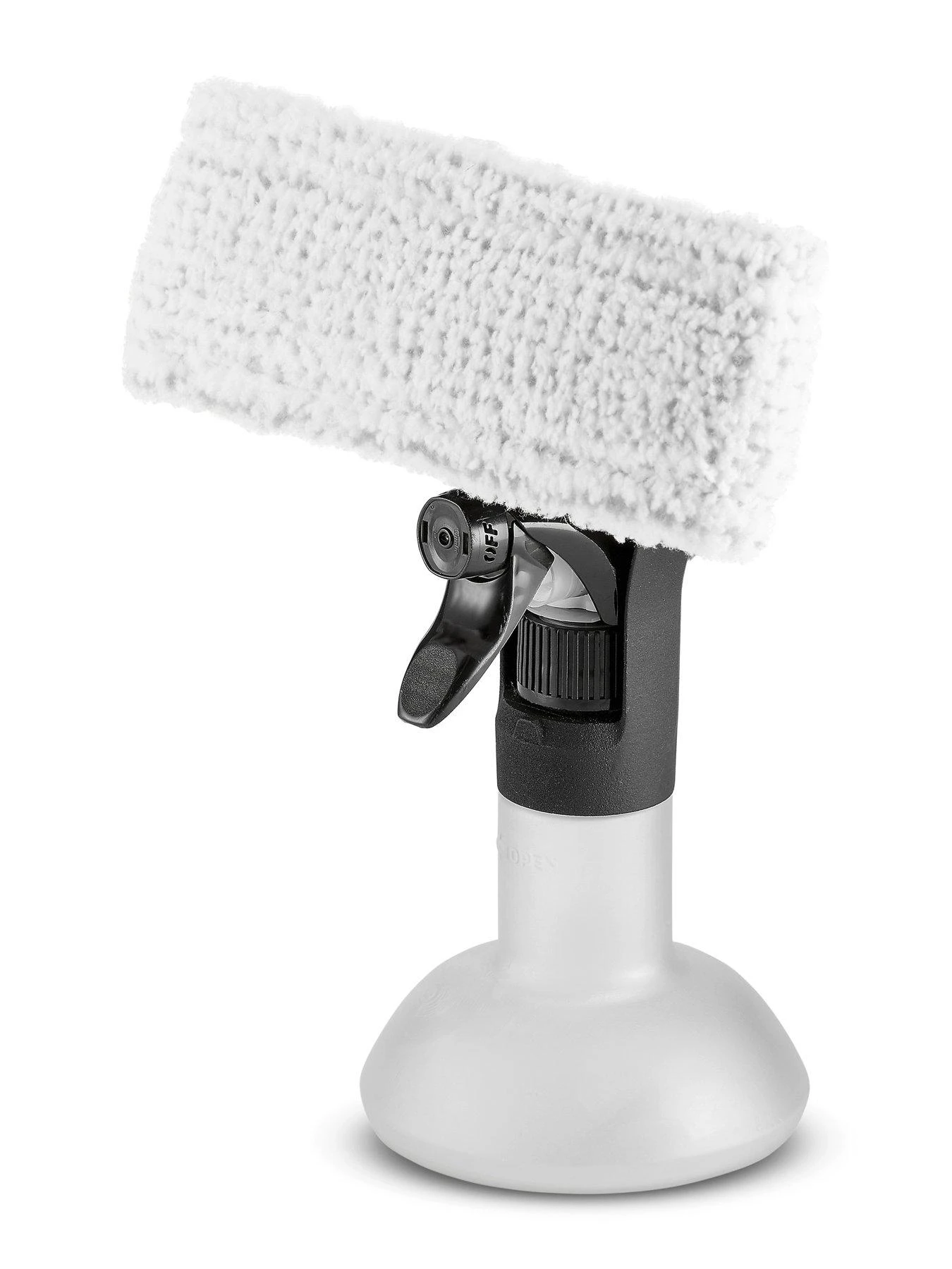 The Premium Spray Bottle Kit is the perfect partner for your Karcher Window Vac, Simply spray the mixture of water and specially formulated detergent onto your smooth surface, agitate using the microfibre cloth and use your Karcher window vac for sparkling streak-free results. The package includes an adjustable wiper for cleaning both wide and narrow windows. With the hook-and-loop-fastening system, the microfibre wiping cloth can be easily attached and removed. The 20ml Window Cleaner Concentrate helps to remove stubborn stains such as grease, insects, finger marks and emissions from smooth surfaces. In addition, the dirt scraper can be used to effortlessly remove stubborn dirt from your windows.