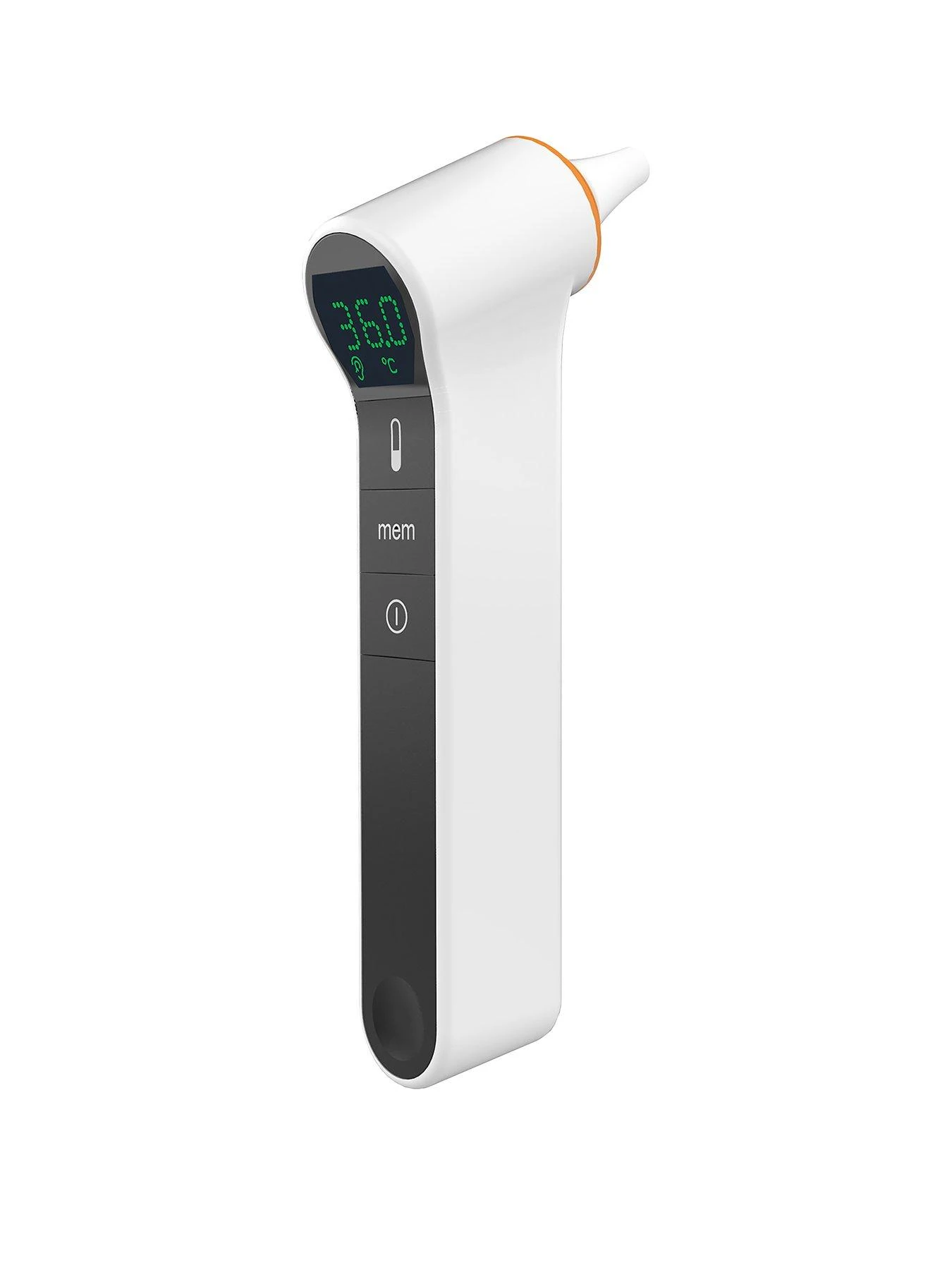 Equipped with a backlit display with traffic light system, this thermometer is suitable from birth. It also includes a fever alarm and 9 reading memory.