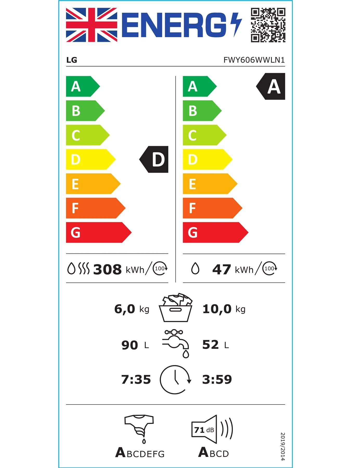 LG LG TurboWash FWY606WWLN1 10kg / 6kg Washer Dryer – White – A-10% / D Rated