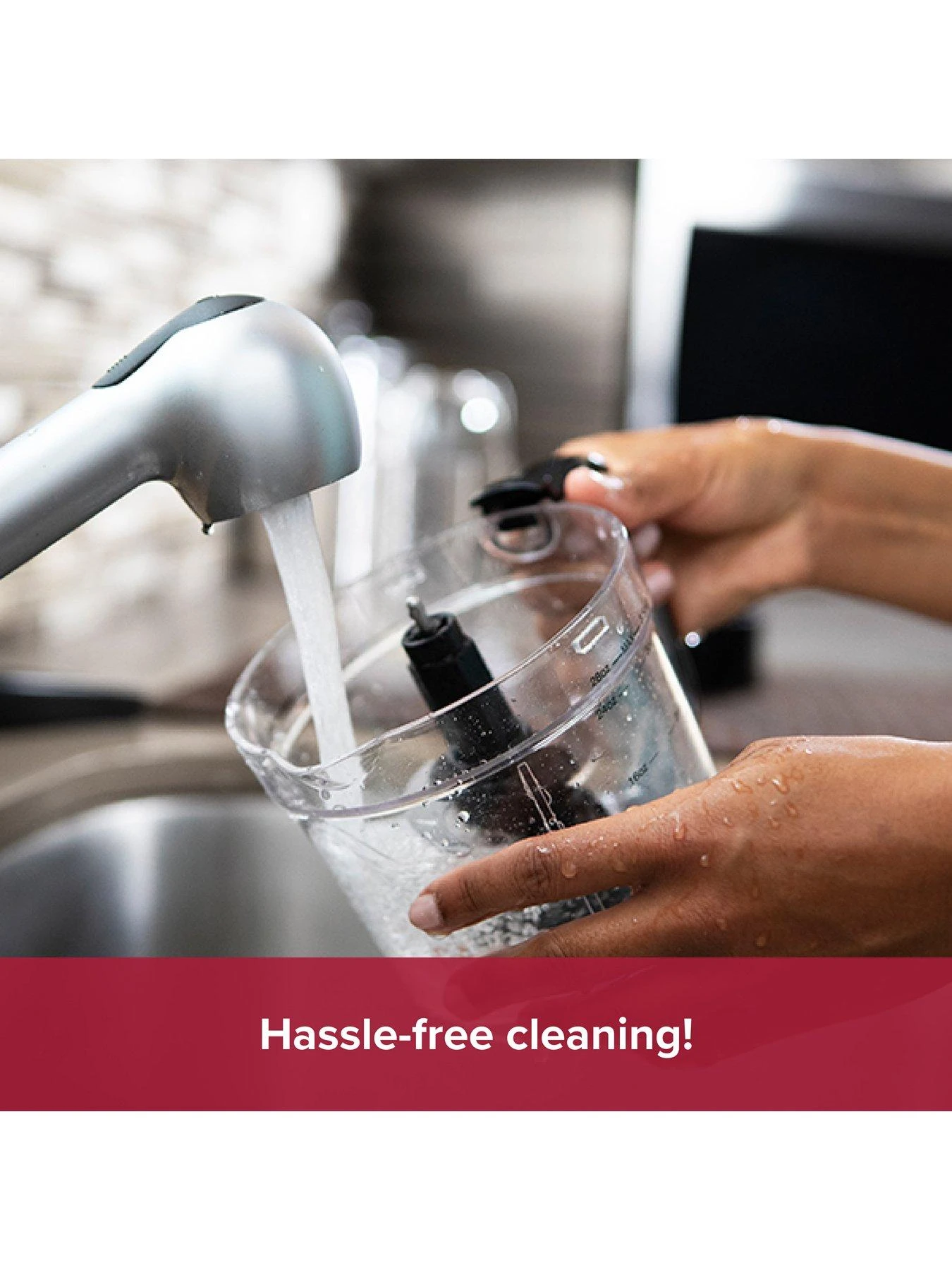 - Hassle-free cleaning. Everything except for the power base goes right in your dishwasher for easy clean up.