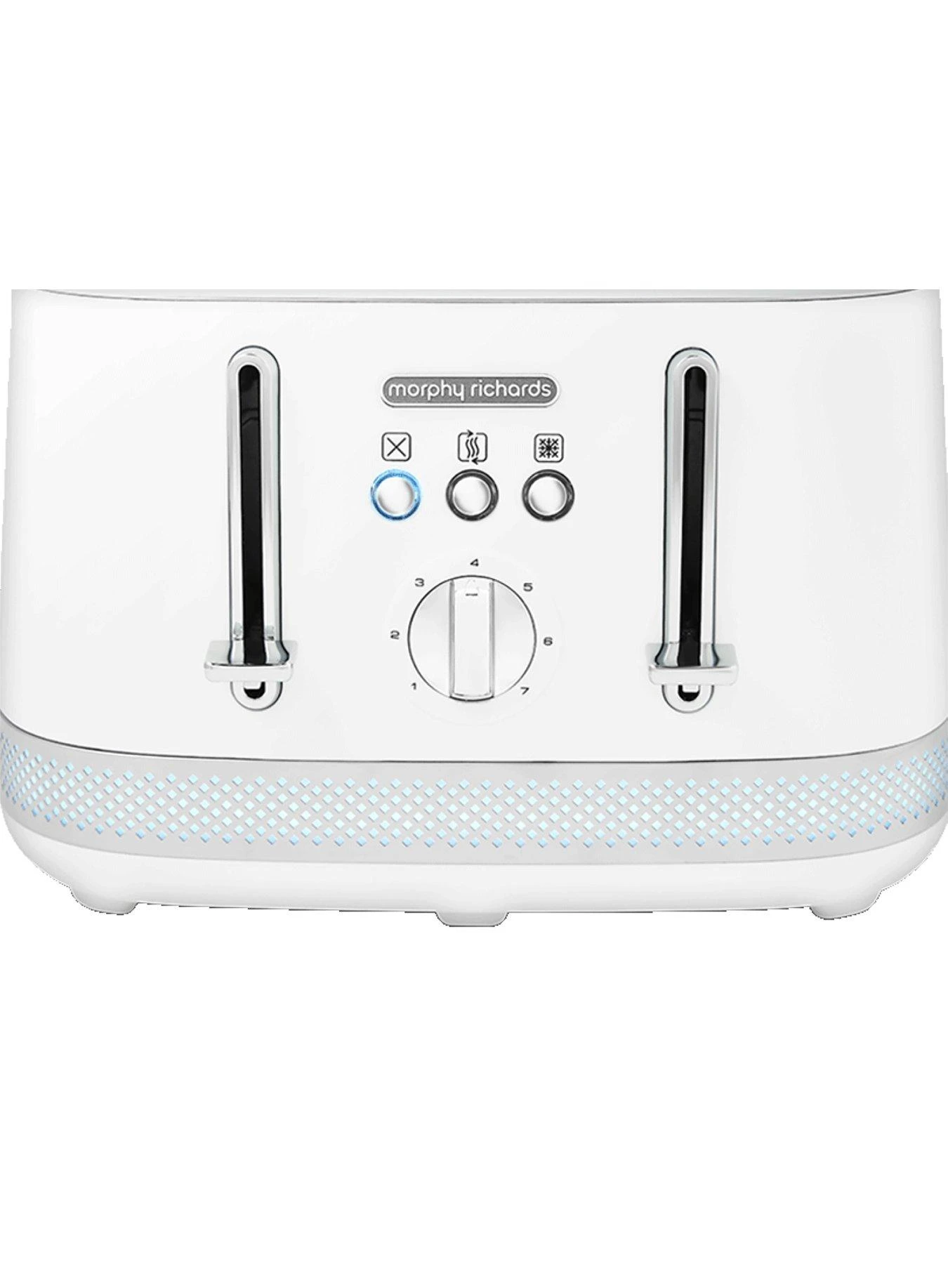 Let the new Morphy Richards Illumination Collection breathe life into your kitchen. Feel the calming blue light provide you with a few minutes of escapism whilst toasting your bread.The Illumination 4 Slice Toaster has frozen, cancel and reheat settings t