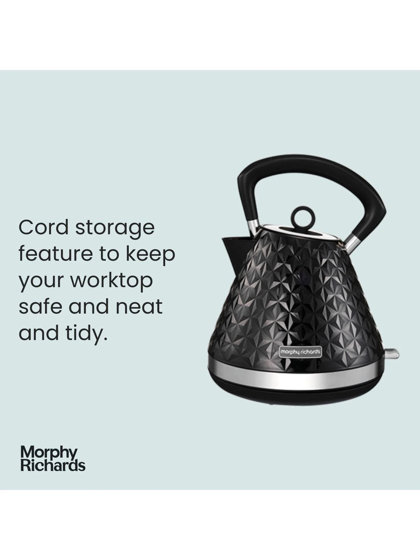 Your home deserves an ultra-stylish kettle. In a glossy black finish with a 3D patterned design, this Vector pyramid kettle from Morphy Richards is a bold choice for any modern kitchen. It has a 1.5L capacity, which is perfect for entertaining or for large families.