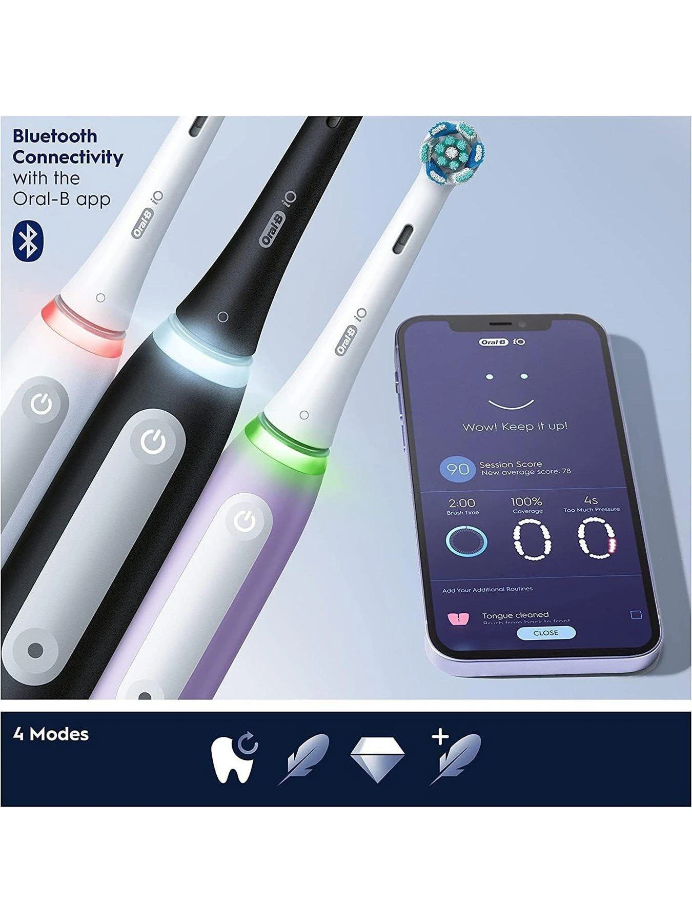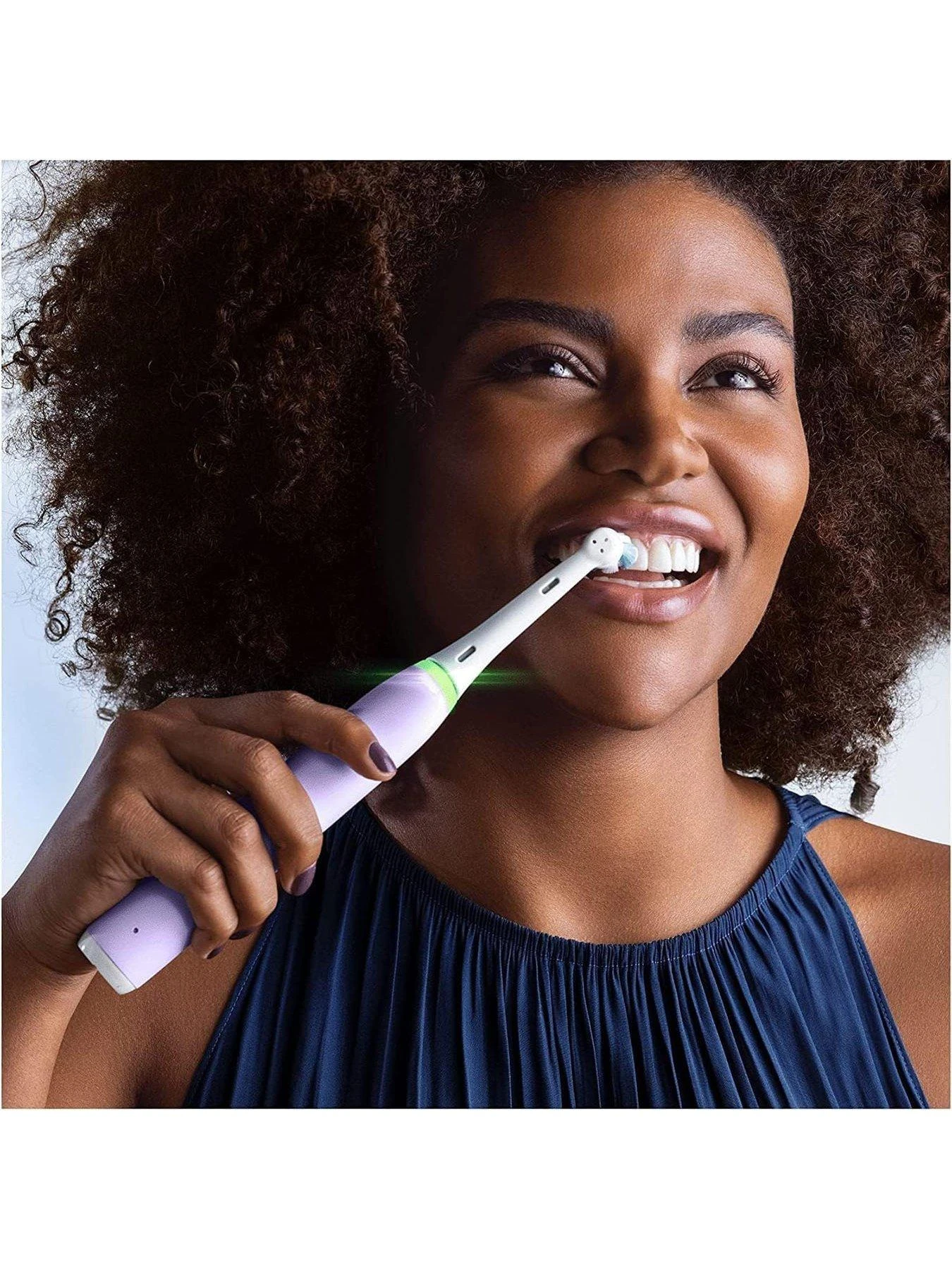 The iO 4 electric toothbrush features Oral-B’s best technology, combining a dentist-inspired round brush head with micro-vibrating bristles for a professional purifying clean feel at home. The Smart Pressure Sensor helps prevent you from brushing either too hard or too softly to better protect your gums. Gum Guard alerts you to time spent brushing with too much pressure. Replace your Oral-B iO toothbrush head every 3 months for the best results.