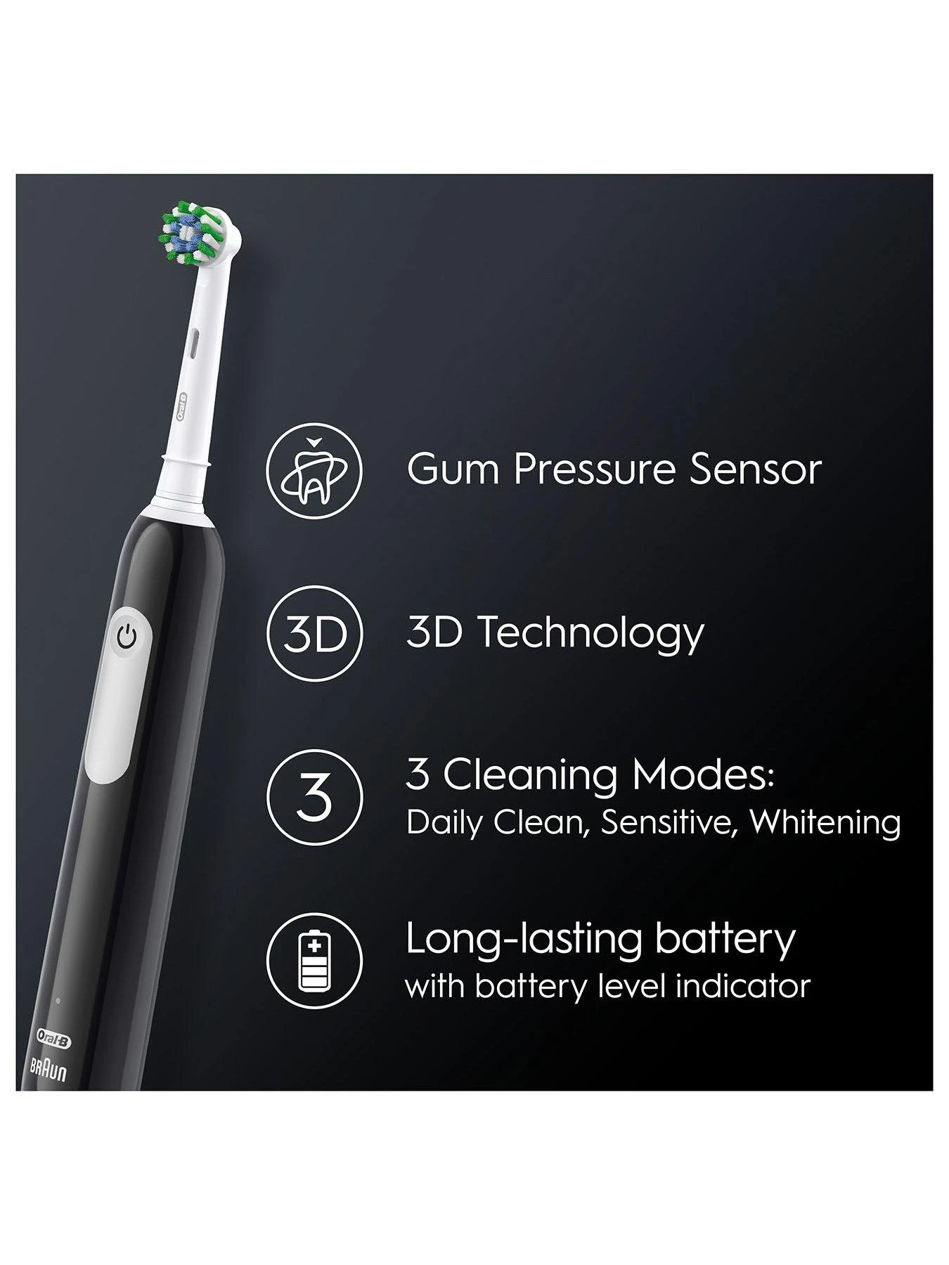 - Unique Oral-B’s 3D cleaning technology: oscillates rotates and pulsates for up to 100% more plaque removal even in hard to reach areas