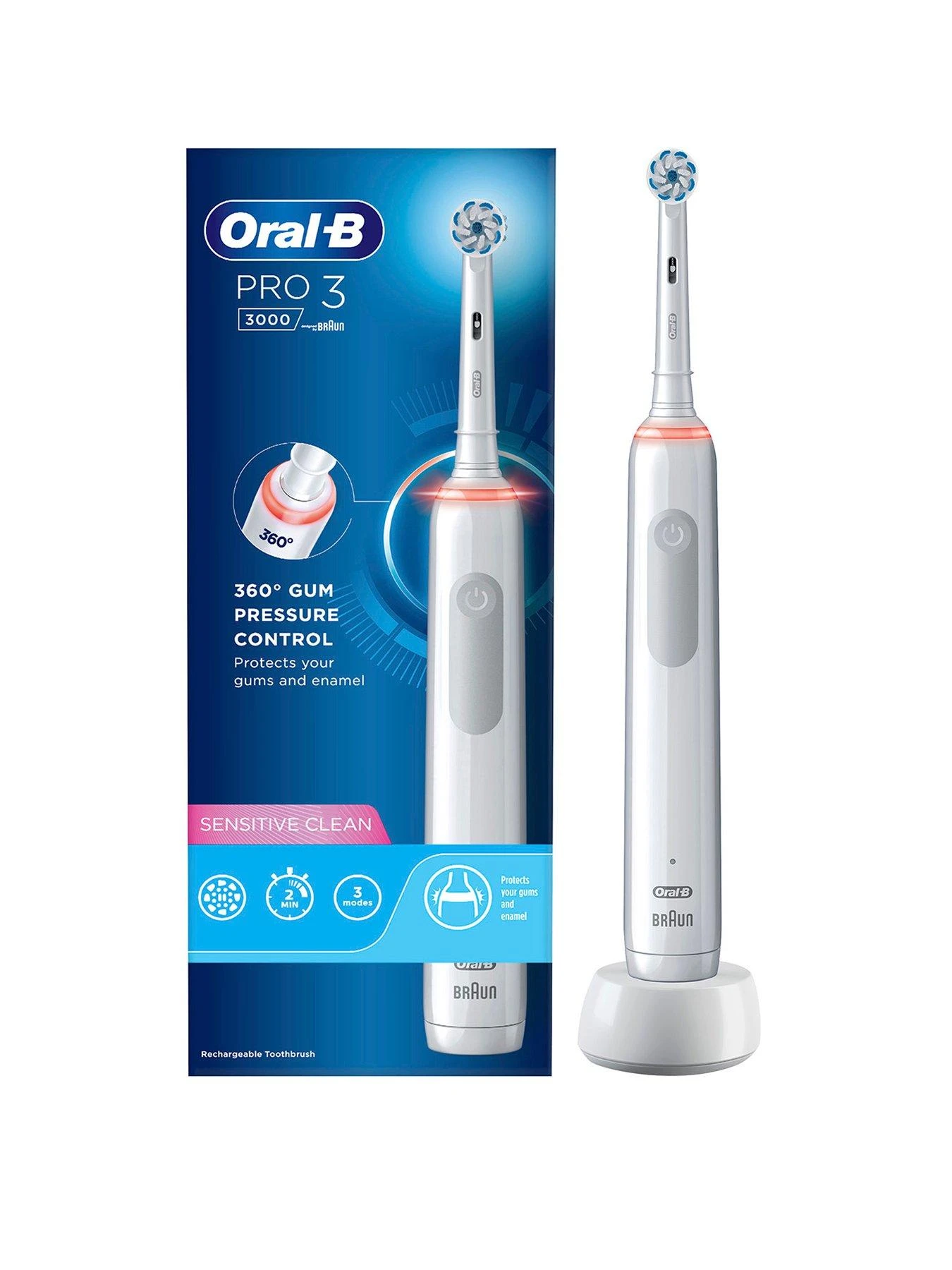Experience a brighter smile from day 1 with the Oral-B Pro 3 – 3000 Sensitive Clean – White Electric Toothbrush.