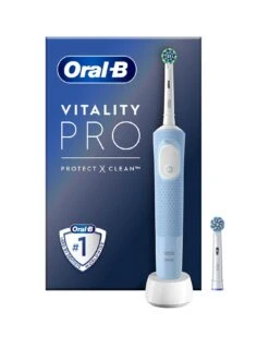 The Oral-B Vitality Pro electric rechargeable toothbrush provides a clinically proven superior clean vs. a regular manual toothbrush. The toothbrush comes 3 brushing modes: daily clean, sensitive and sensitive plus mode for an amazingly gentle experience. An in-handle timer helps you brush for a dentists-recommended 2 minutes. Best of all it’s brought to you by Oral-B – the #1 brand used by dentists worldwide.