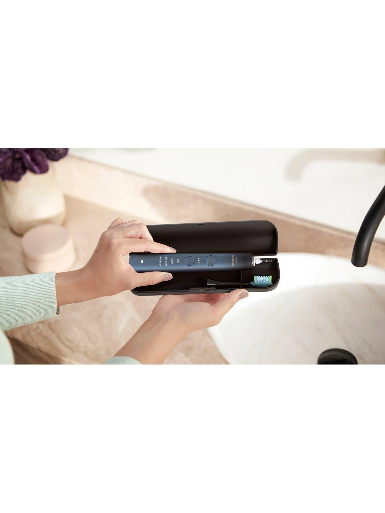 The DiamondClean 9000 guides you to improve your brushing habits. Built-in smart sensors let you know when you’re using too much pressure, and by connecting your brushing experience to the Sonicare app, a personalized Progress Report helps you stay on track. BrushSync technology also tracks how long you’ve been using your brush head for – and tells when it’s time to replace it.