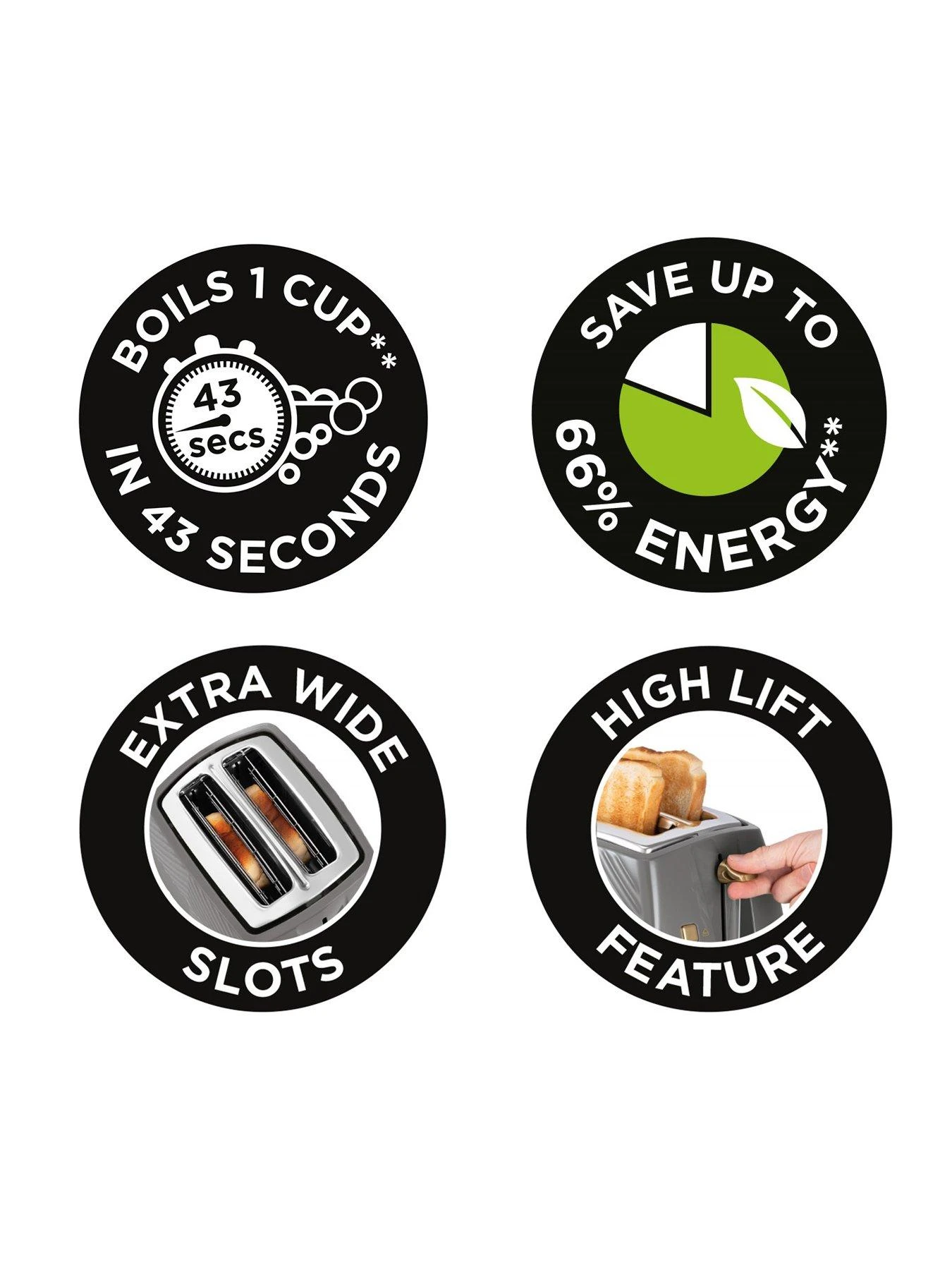 Textures never go out of style and the Russell Hobbs Grey Groove Kettle and Toaster Bundle’s chic, tactile finish and gold accents will make a fashionable statement on your kitchen countertop.