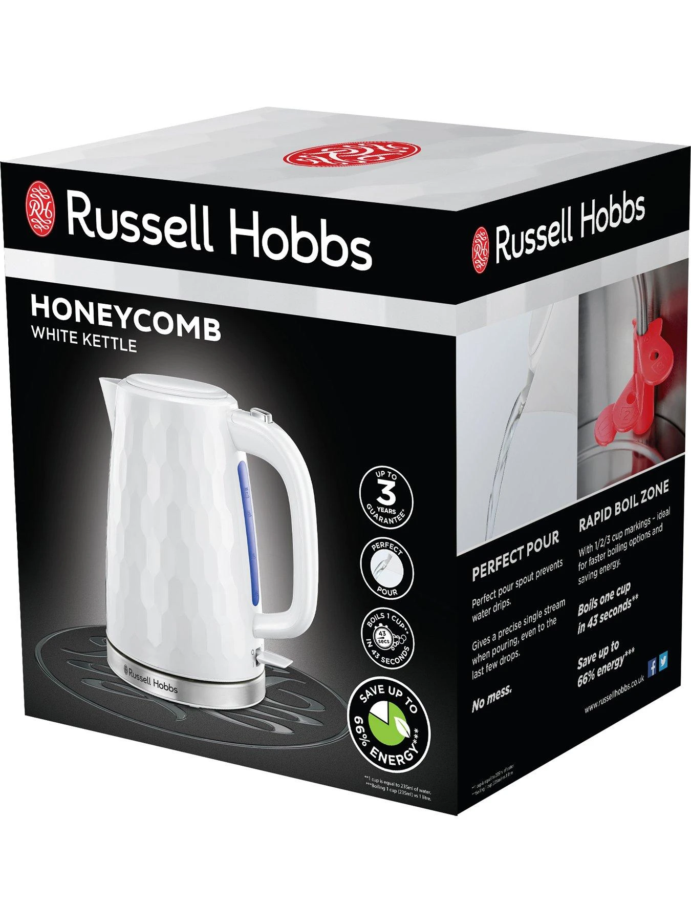 Russell Hobbs Honeycomb White Plastic Kettle – 26050