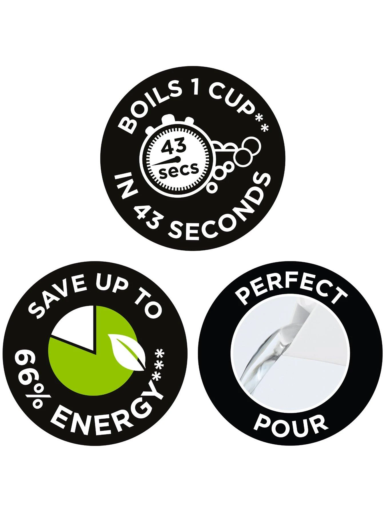 - Saves up to 66% energy** **Boiling 1 cup (235ml) vs 1 litre